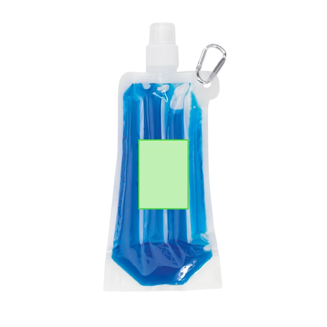 Bidón enfriador de 400ml de capacidad con cuerpo acabado en PET transparente y líquido refrigerante en vivos colores. Con tapón de seguridad a rosca y mosquetón metálico de transporte.