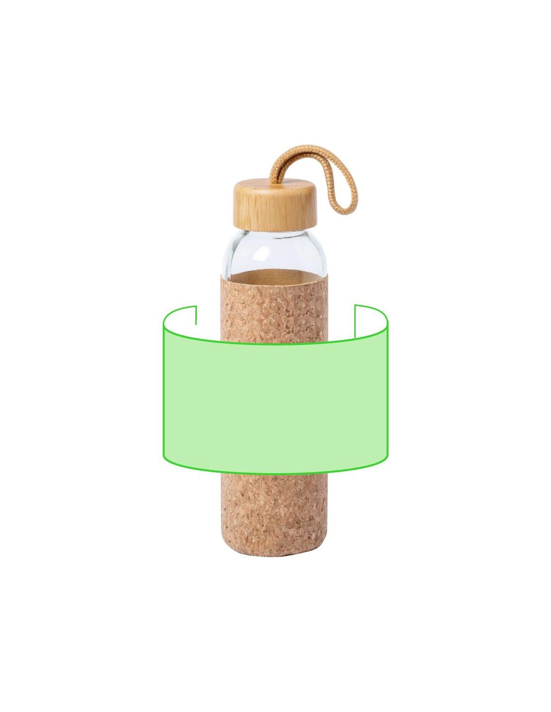 Bidón de línea nature de 500ml de capacidad. Fabricado con cuerpo de cristal y tapón a rosca de bambú, con práctica asa de transporte trenzada en color natural. Incluye funda de corcho natural y viene presentado en caja individual de atractivo diseño eco.