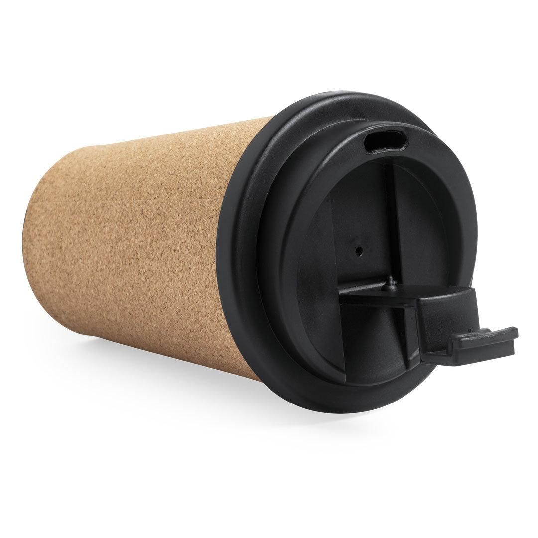 Vaso fabricado en corcho natural con 350 ml de capacidad. Dosificador y tapa abrefácil en PP, libre de BPA. Es ideal para tener en tu escritorio, mesa o en cualquier superficie donde disfrutar tranquilamente de tu bebida favorita.