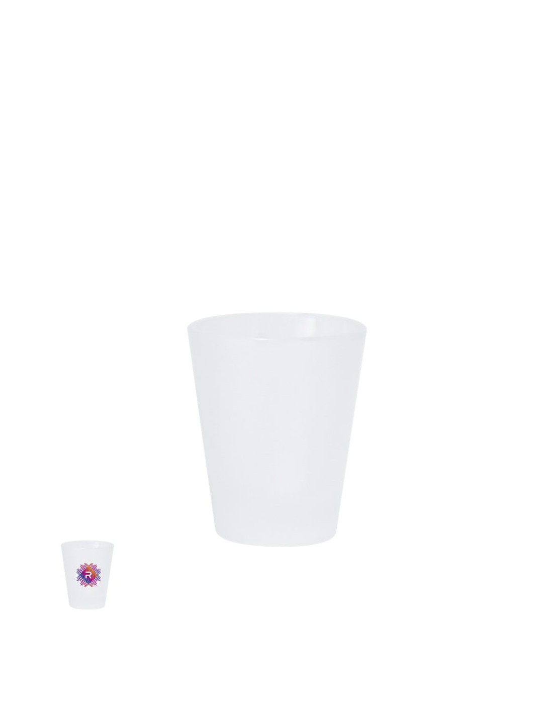 Vaso de chupito de 50 ml de capacidad en resistente cristal de acabado frosted. Especialmente diseñado para marcaje en sublimación.