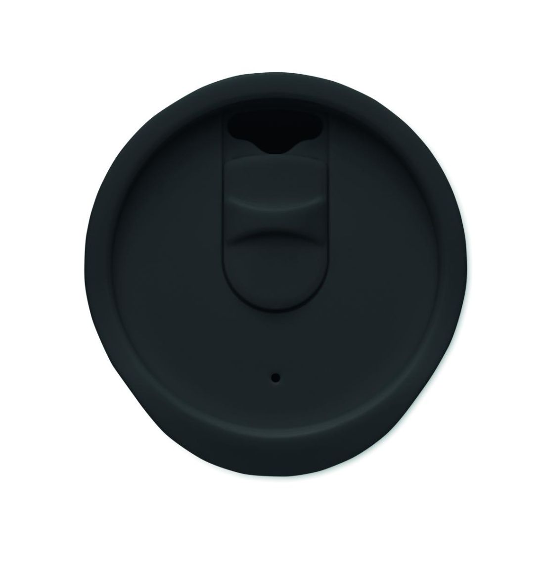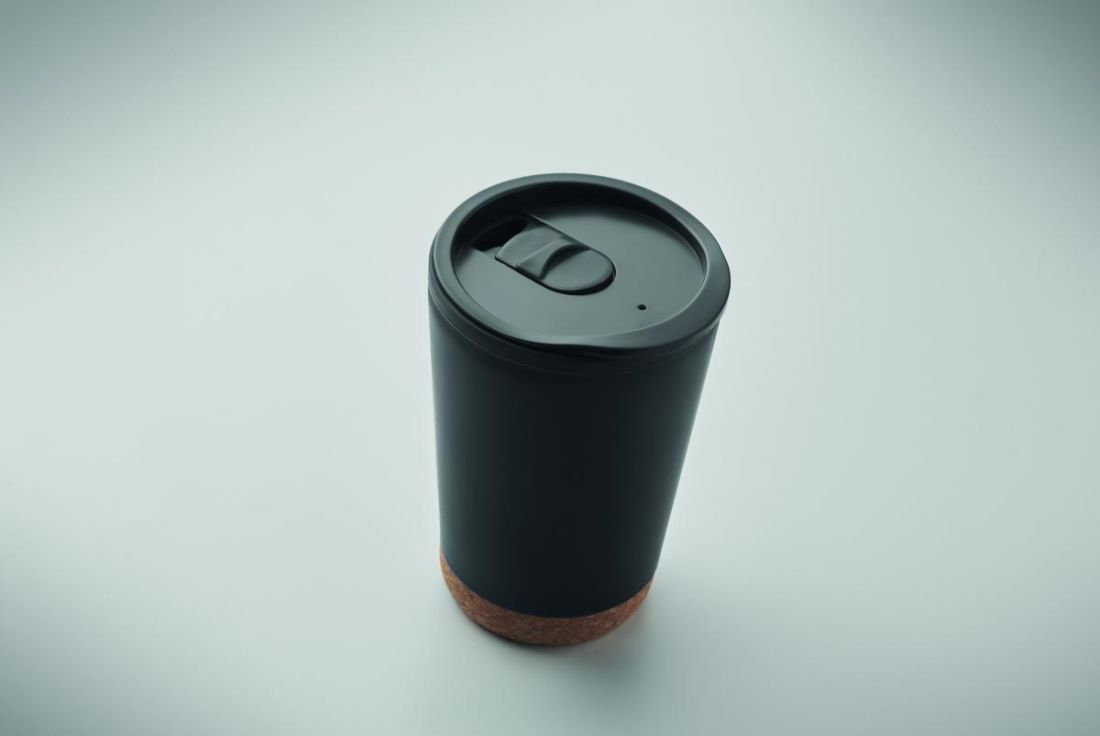 Vaso de doble pared en PP y base de corcho con cierre deslizante. Hecho en PS y ABS. Capacidad: 300 ml.