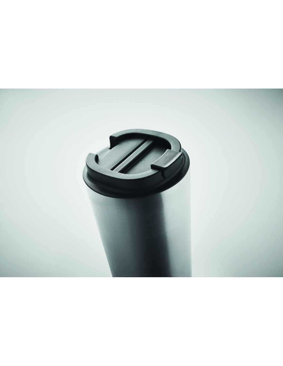 Vaso de acero inoxidable reciclado de doble pared con tapa de PP. Capacidad: 510 ml. Anti fugas.