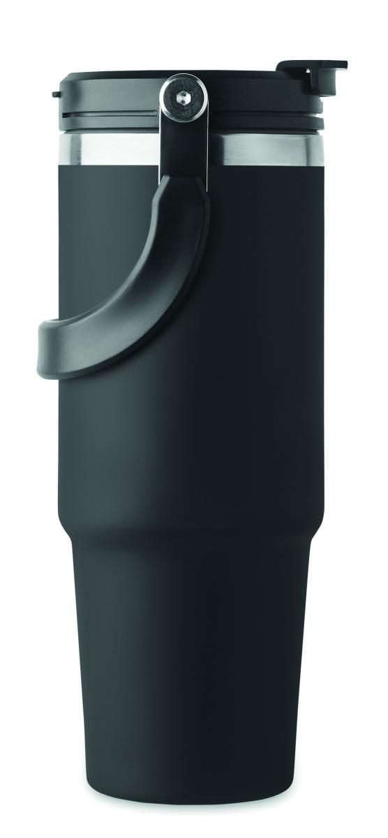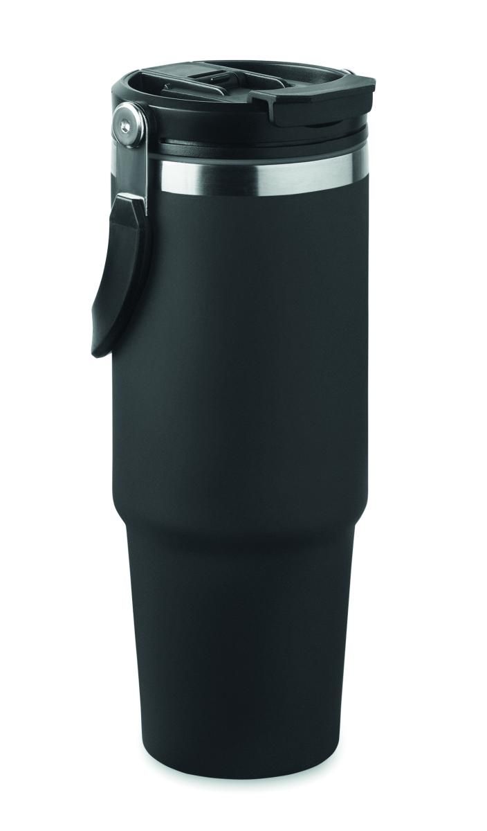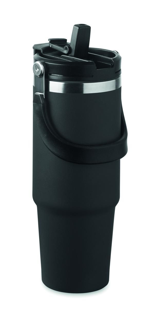 Vaso de acero inoxidable reciclado de doble pared (90% de acero inoxidable reciclado y 10% de acero inoxidable) con tapa y pajita interior, boquilla plegable y abertura directa para beber . Capacidad 850 ml.
