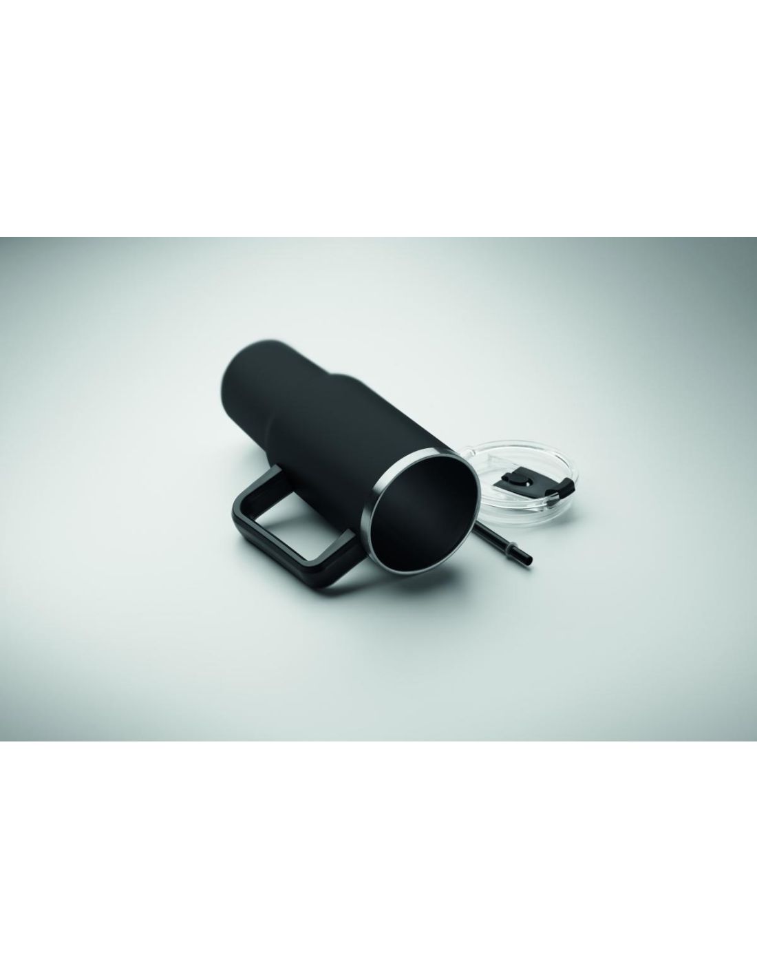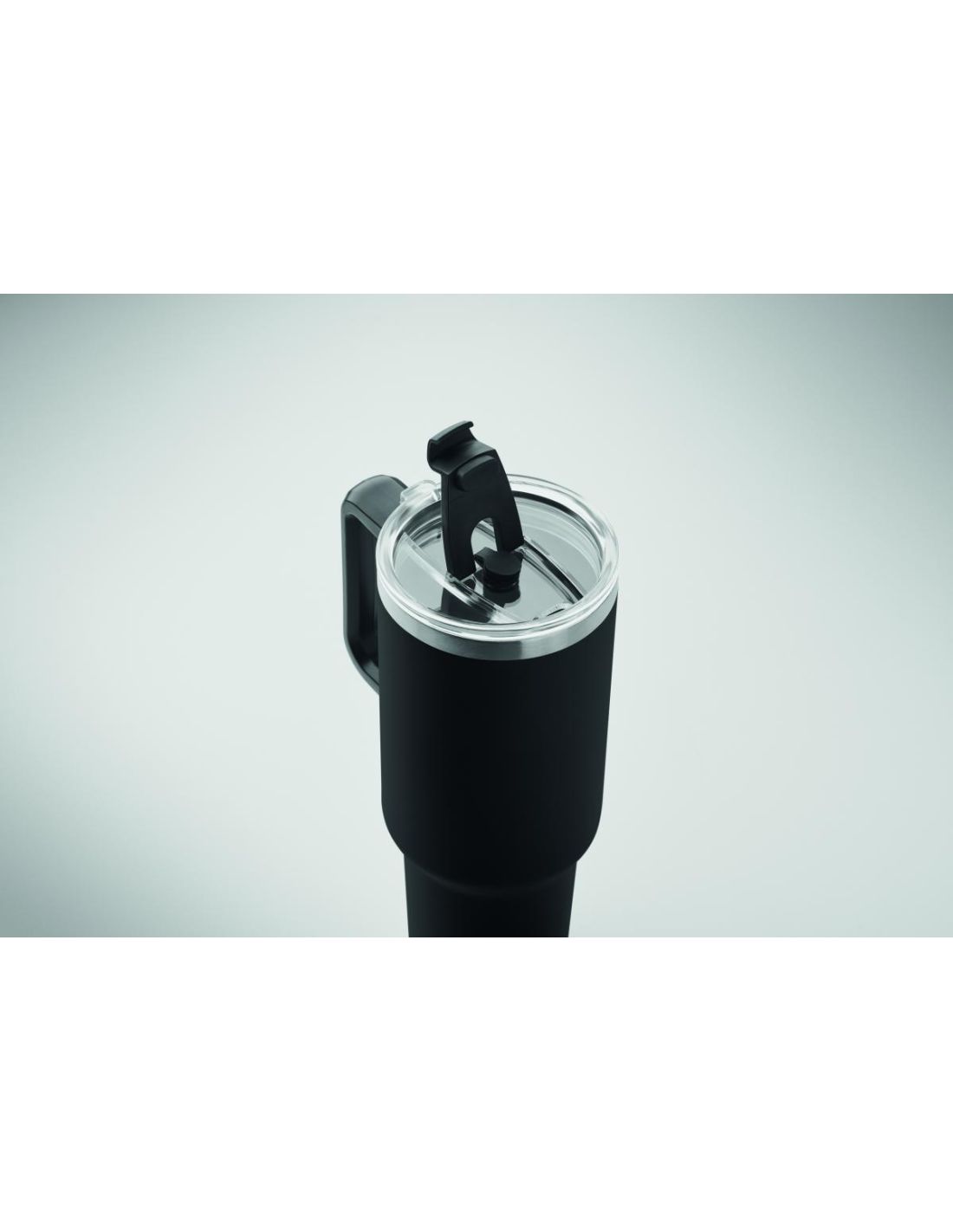 Vaso de acero inoxidable reciclado de doble pared, con tapa y pajita de polietileno. Capacidad 1200 ml. (90% de acero inoxidable reciclado y 10% de acero inoxidable).