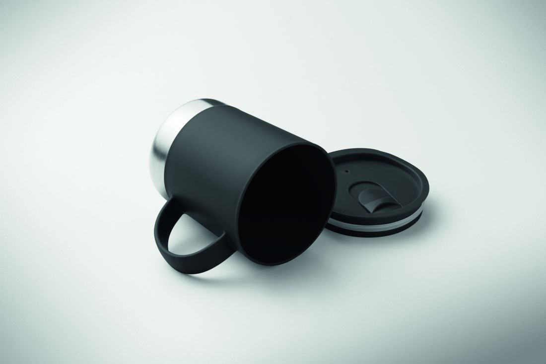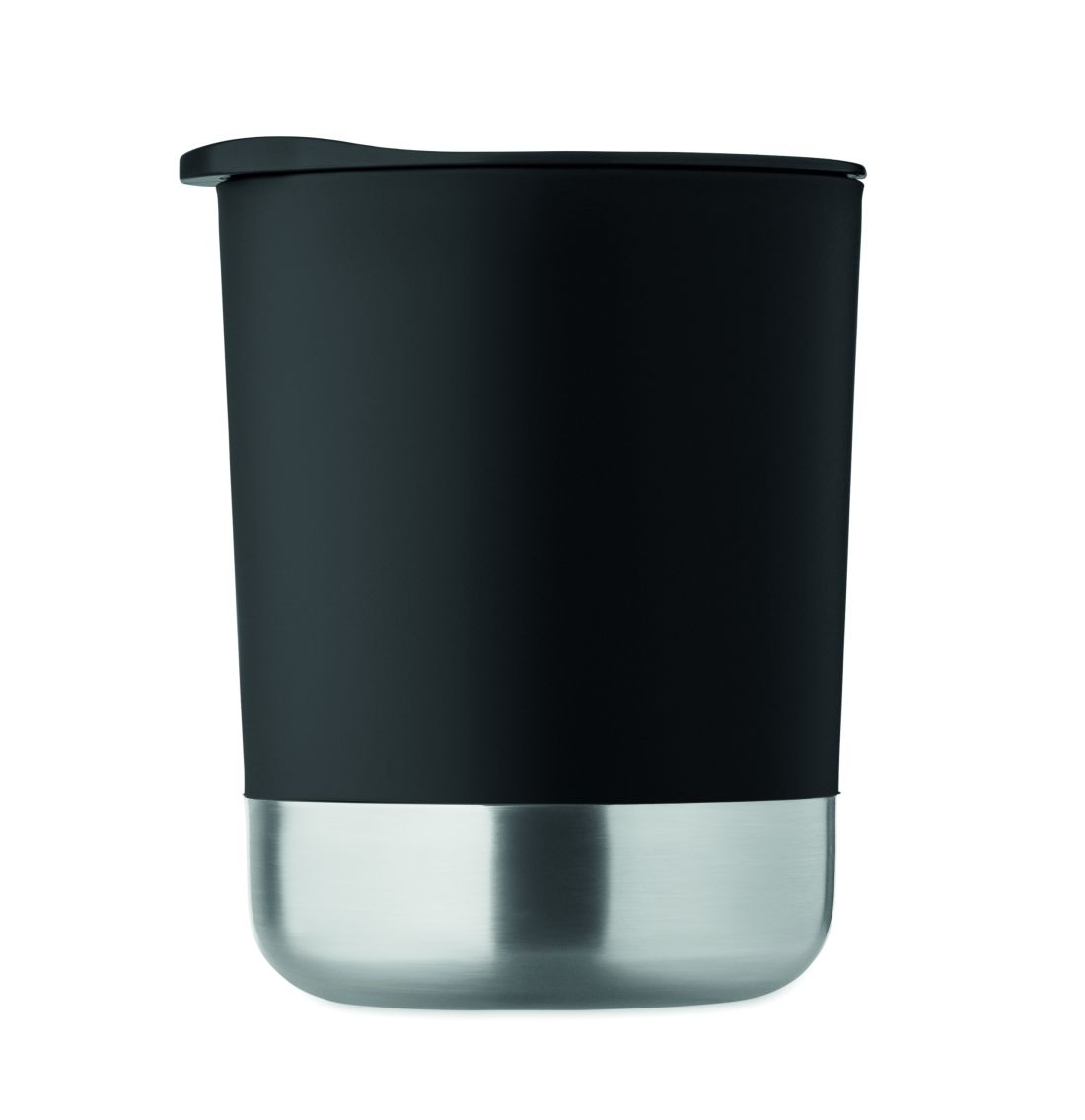 Vaso de PP con base de acero inoxidable reciclado (90% de acero inoxidable reciclado y 10% de acero inoxidable) y tapa corredera de PP. Capacidad: 300 ml.