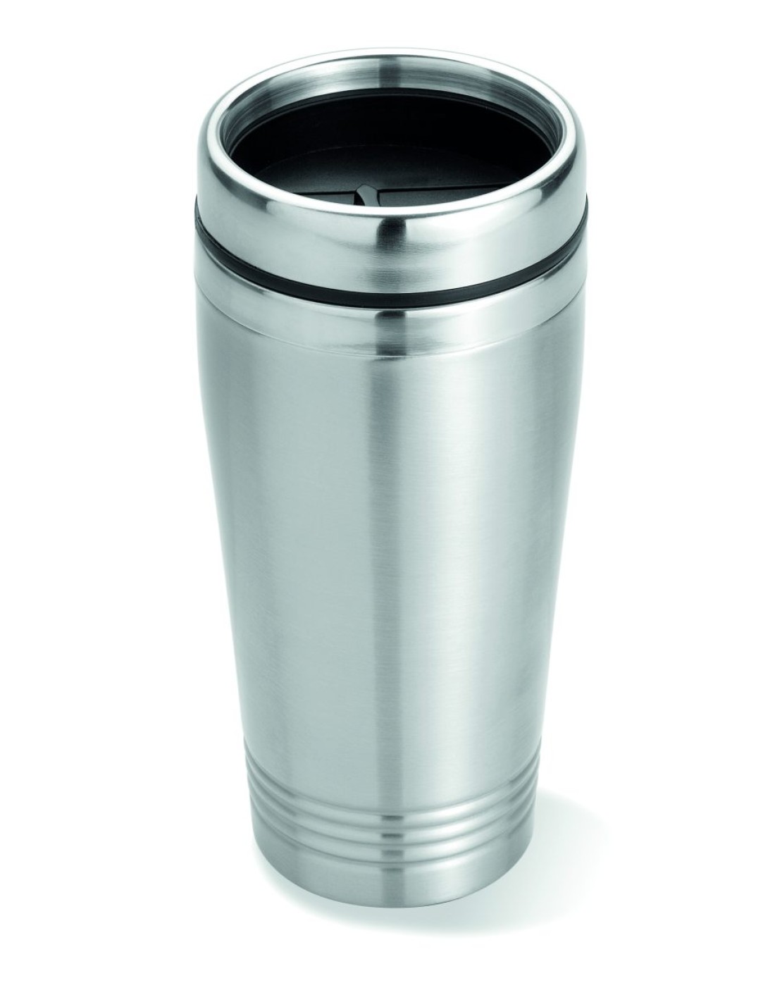 Vaso de viaje de acero inoxidable de doble capa con tapa negra de PP Capacidad: 400ml.