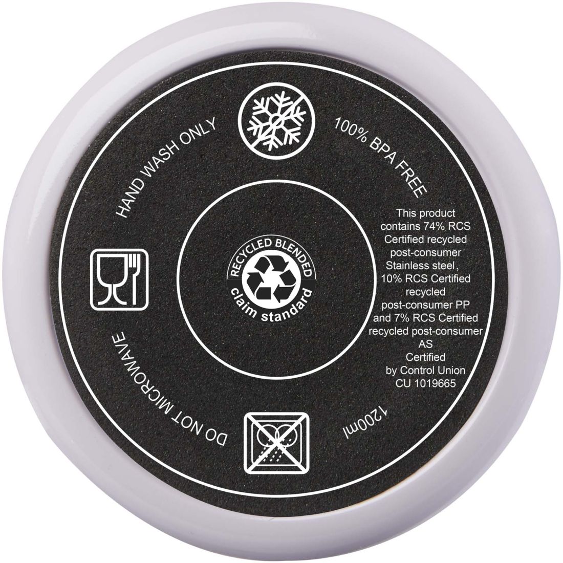 El vaso Melbourne cuenta con aislamiento de aire de doble pared, que mantiene las bebidas calientes hasta 2 horas y frías hasta 4 horas. . La pared interior del vaso está hecha de plástico reciclado y la exterior es de acero inoxidable reciclado con certificación RCS. El vaso tiene una capacidad de 1200 ml para mantener la hidratación durante todo el día con estilo. Dispone de una tapa a presión a prueba de salpicaduras con dos aberturas y cierre giratorio. Incluye una pajita reciclada apta para uso alimentario. Lavado a mano únicamente.