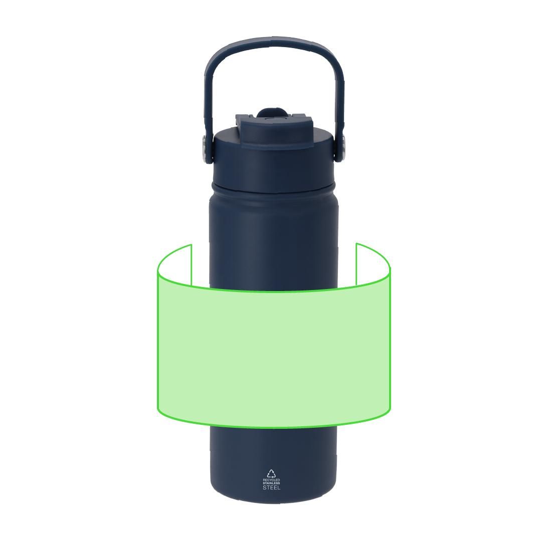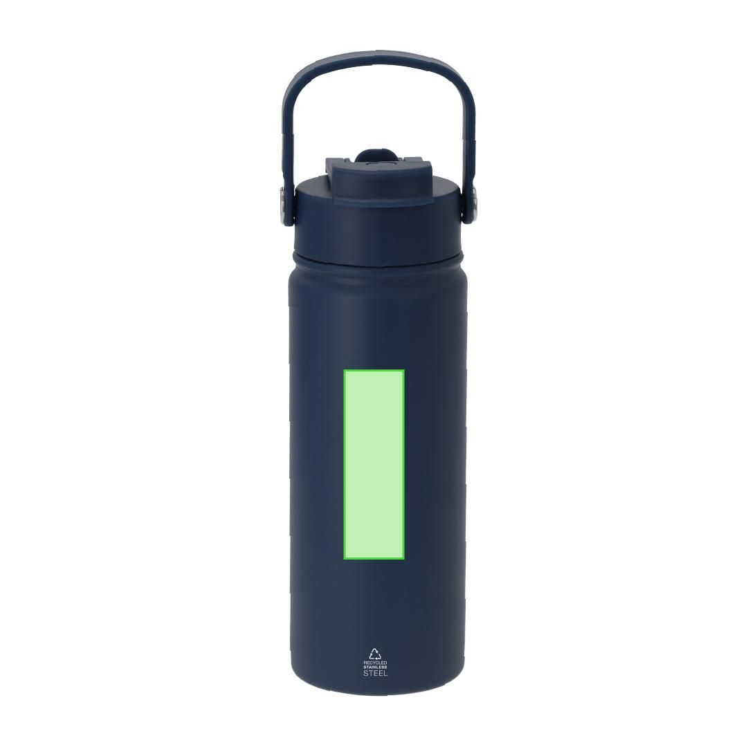 Vaso térmico con 550 ml de capacidad. Fabricado en Acero Inoxidable Reciclado. Cuenta con doble sistema de bebida: orificio con cierre hermético y pajita integrada, adaptándose a las preferencias de uso. Con tapa de sistema de sellado hermético. Incluye práctica asa de transporte, ideal para transportarlo fácilmente en cualquier situación. Libre de BPA. Con distintivo de Acero Inoxidable Reciclado.