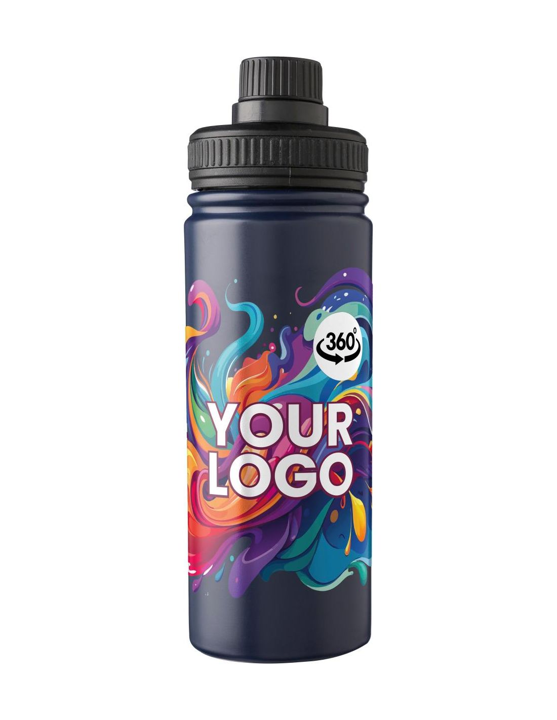 Botella de acero inoxidable de doble pared (500 ml) con tapa de PP, pico de rosca de PP y asa. Interior acero inoxidable 304 y exterior acero inoxi…