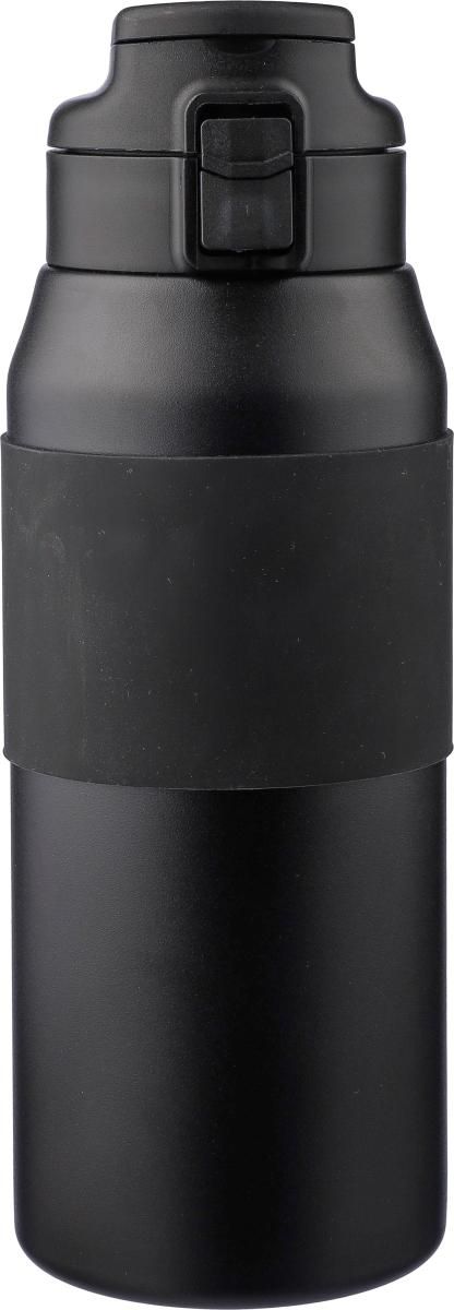 Botella bidón de acero inoxidable 304 de doble pared (800 ml) con agarre de silicona en el cuerpo, pajita, tapa de PP y asa. Botón pulsador para abrir o cerrar la boquilla. Mantiene el contenido caliente durante 8 horas y frío durante 12 horas. Presentada en una caja de cartón marrón.