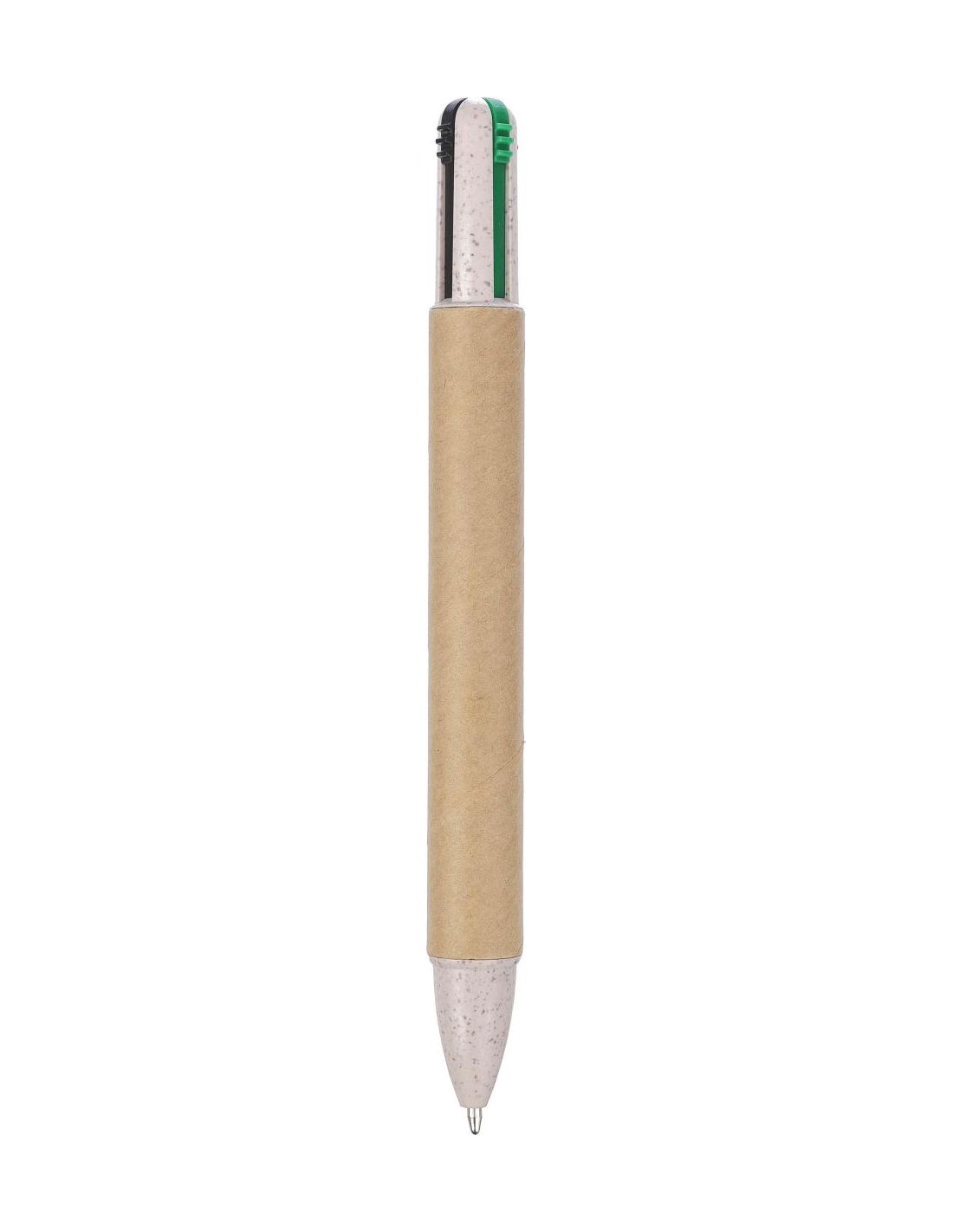 Bolígrafo de cartón reciclado y paja de trigo. Aprox. 300 metros de longitud de escritura por color. Tintas: azul, negro, rojo y verde.