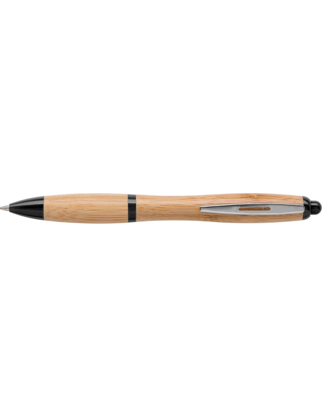 Bolígrafo de bambú con detalles de color en ABS y clip metálico. Tinta azul.