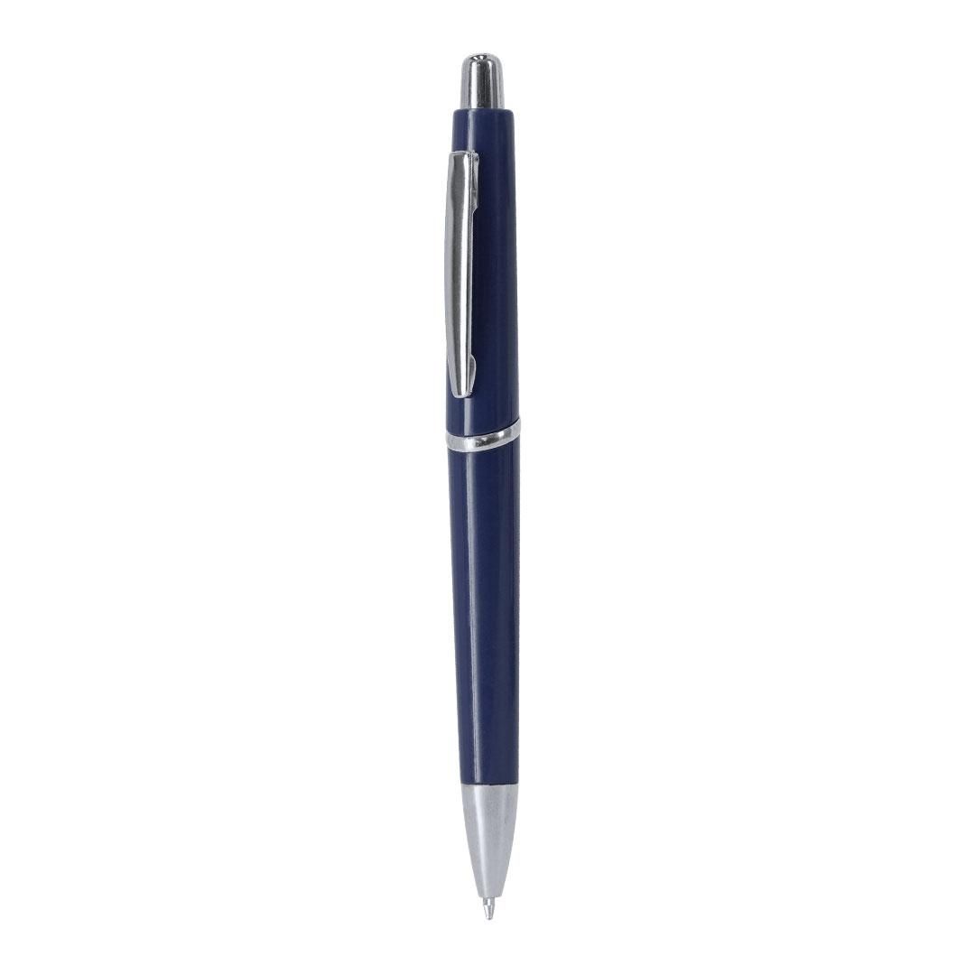 Bolígrafo de mecanismo pulsador en resistente ABS. Fabricado en elegante diseño con accesorio cromado, con pulsador, clip y punta en combinación. En tinta negra.