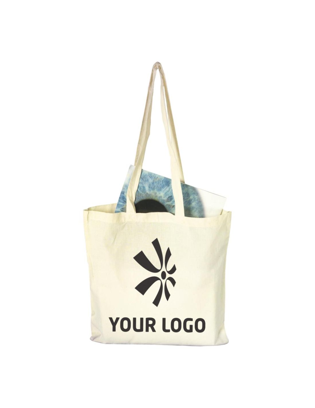 Bolsa de algodón (110 gr/m²) con asas largas.