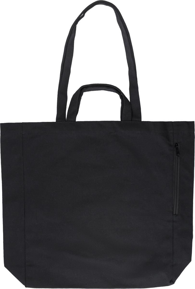 Bolsa de la compra de poliéster y algodón reciclado (350 g/m²) con asas cortas y largas. Bolsillo lateral con cremallera.