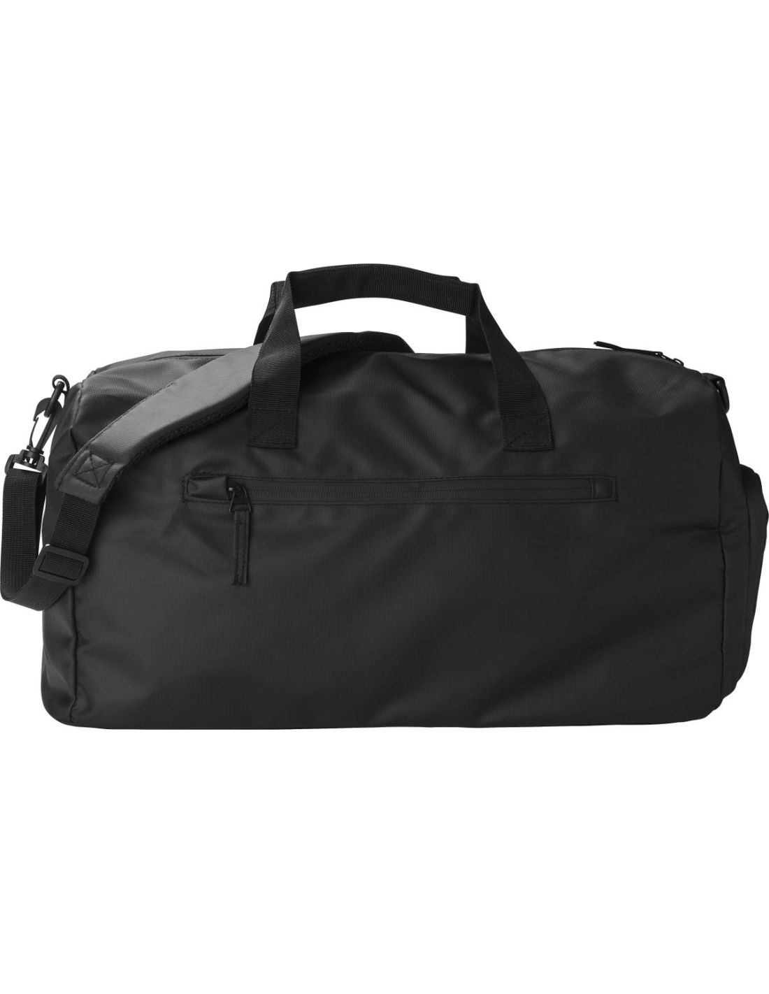 Bolsa deportiva o de viaje, de lona de poliéster (600D). Tanto la bolsa como su cremallera son repelentes al agua. Correa ajustable y asas cortas de mano. Con múltiples compartimentos, un bolsillo para zapatos y bolsillos laterales con cremallera. Fondo reforzado.