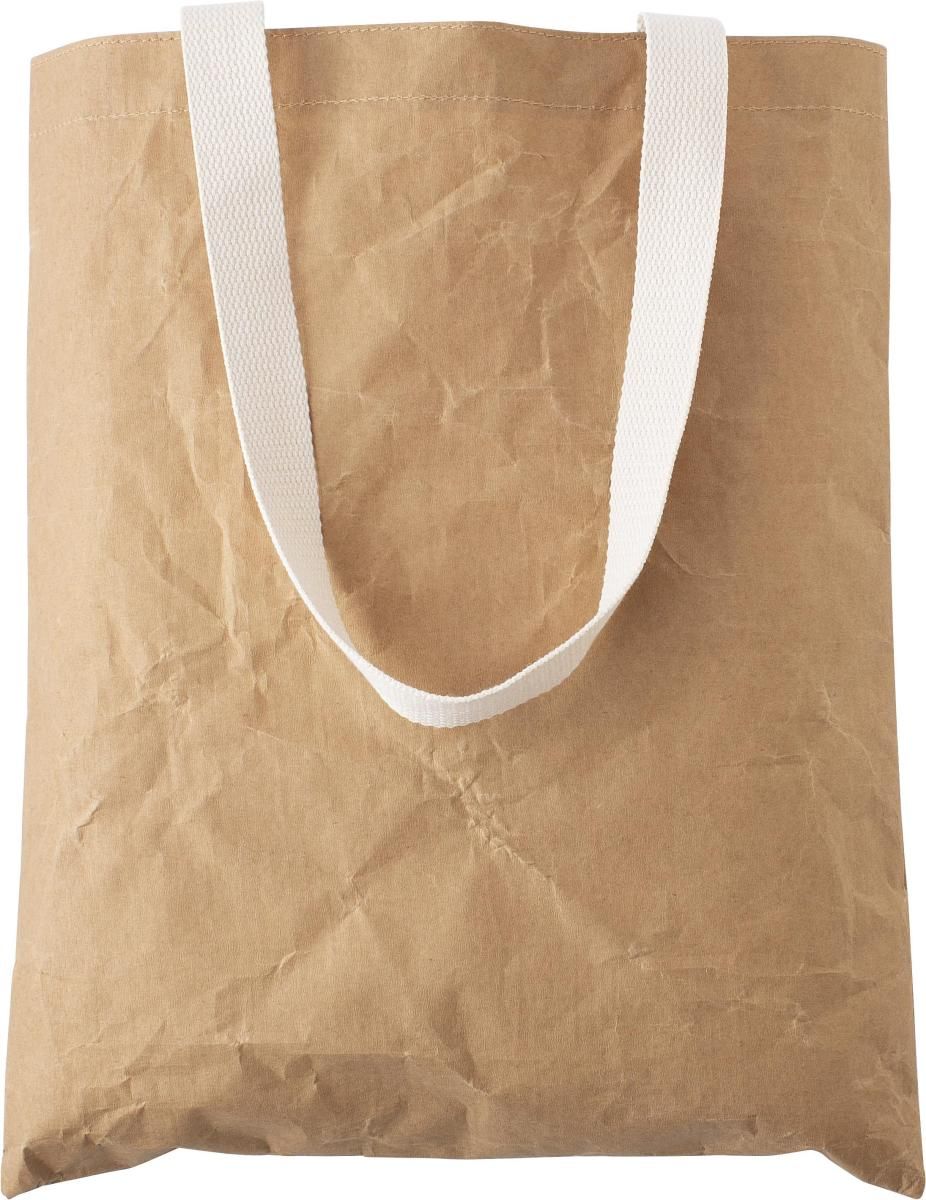 Bolsa de papel Kraft (80 gr/m²) con interior laminado de PE. Asa de poliéster y algodón.
