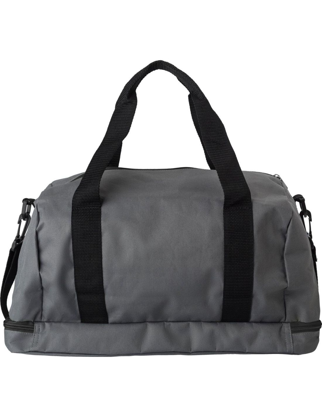 Bolsa deportiva o de viaje, de poliéster (600 D) con un bolsillo con cremallera y un compartimento separado para zapatos en la base. Tiene dos asas y una correa ajustable.