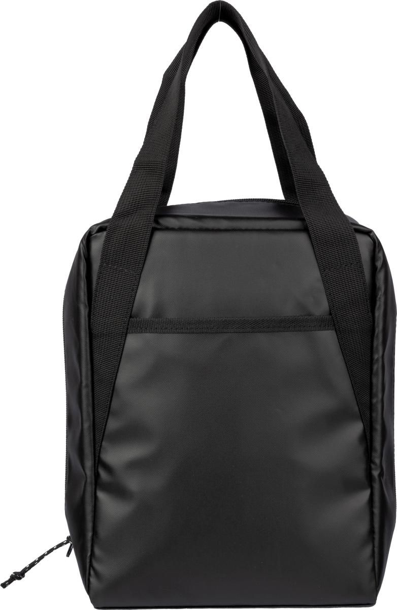 Bolsa térmica recubierta de poliéster (600D) + TPE con interior de PEVA/15C. La bolsa incluye espuma de PE de 6 mm. Gran compartimento con cremallera en la parte superior y un bolsillo con cremallera en la parte delantera. Dos asas de transporte cortas.