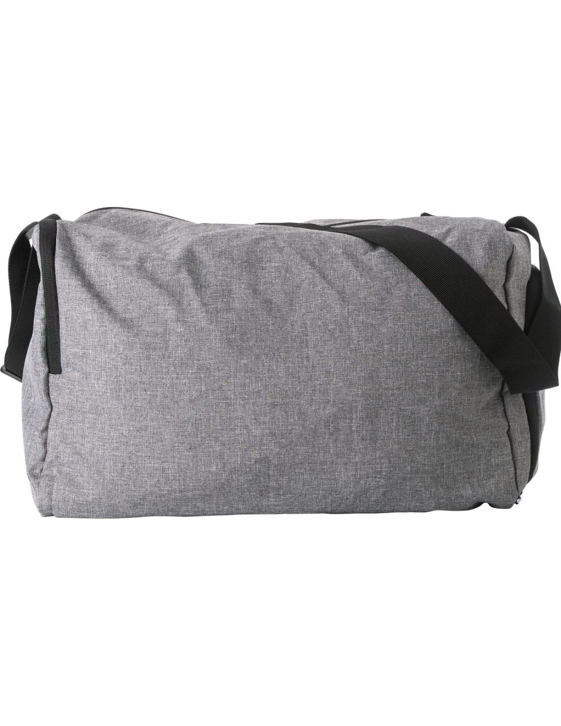 Bolsa plegable de lona bicolor de 300D. Tiene un bolsillo para doblarla y otro bolsillo ideal para guardar los zapatos. Se presenta sin plegar.