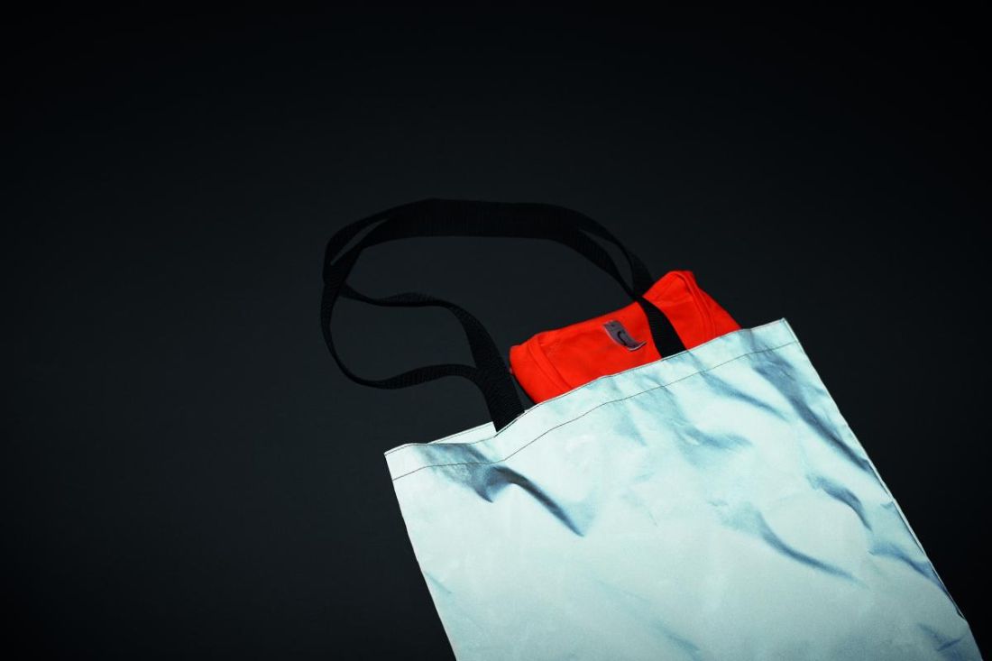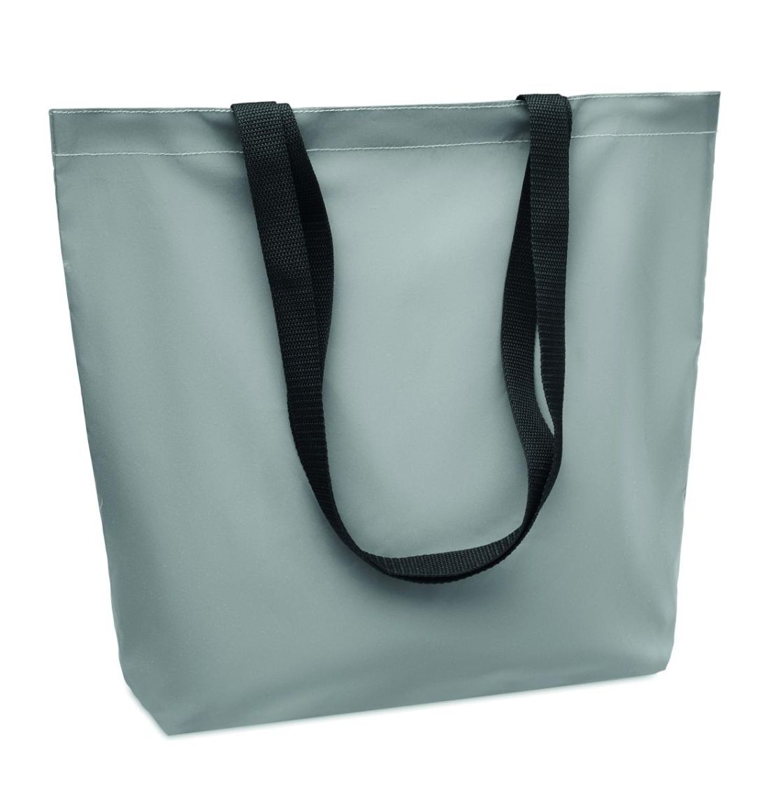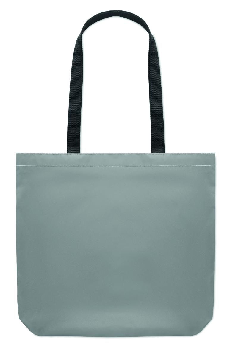 Bolsa de la compra de poliéster 190D altamente reflectante con asas largas.