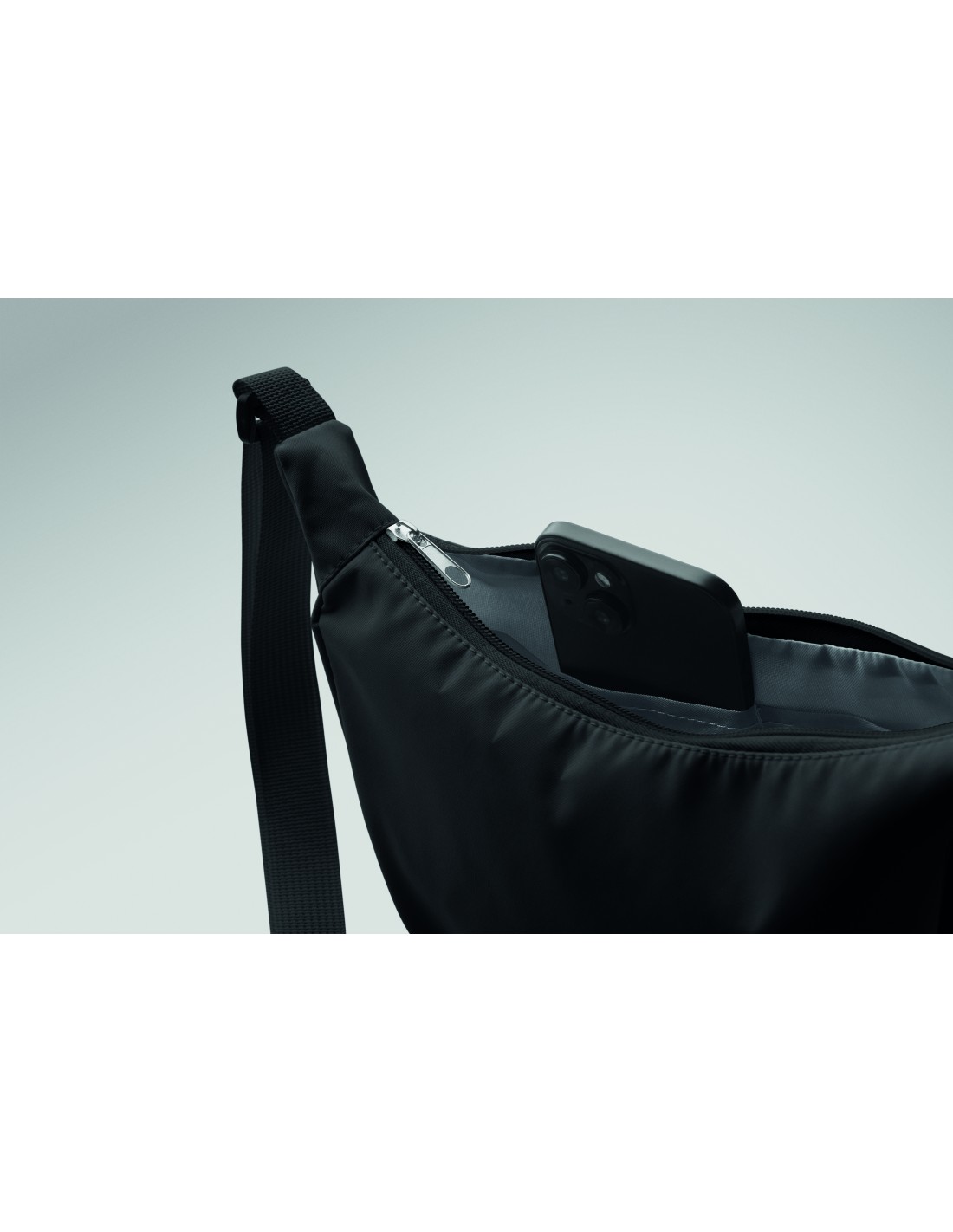 Bolsa bandolera en forma de medialuna o cruzada de Oxford 400D y forro de RPET 210D. Un bolsillo principal con cremallera y 2 bolsillos interiores.