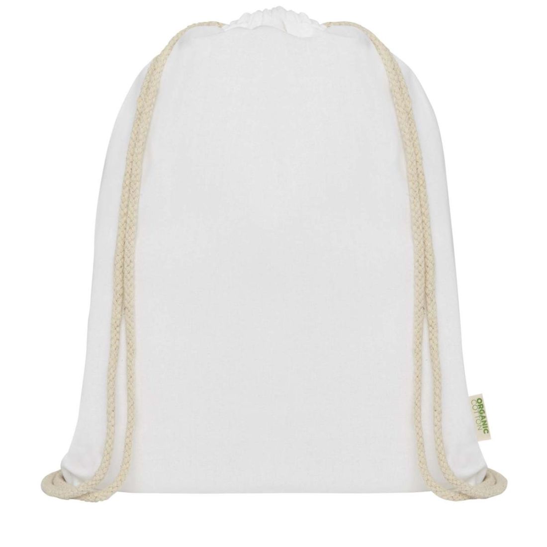 Bolsa con cordón fabricada en algodón orgánico 100 % con certificado OCS de 140 g/m² procedente de la India. La bolsa cuenta con un gran compartimento principal y un cierre de cordón de algodón...