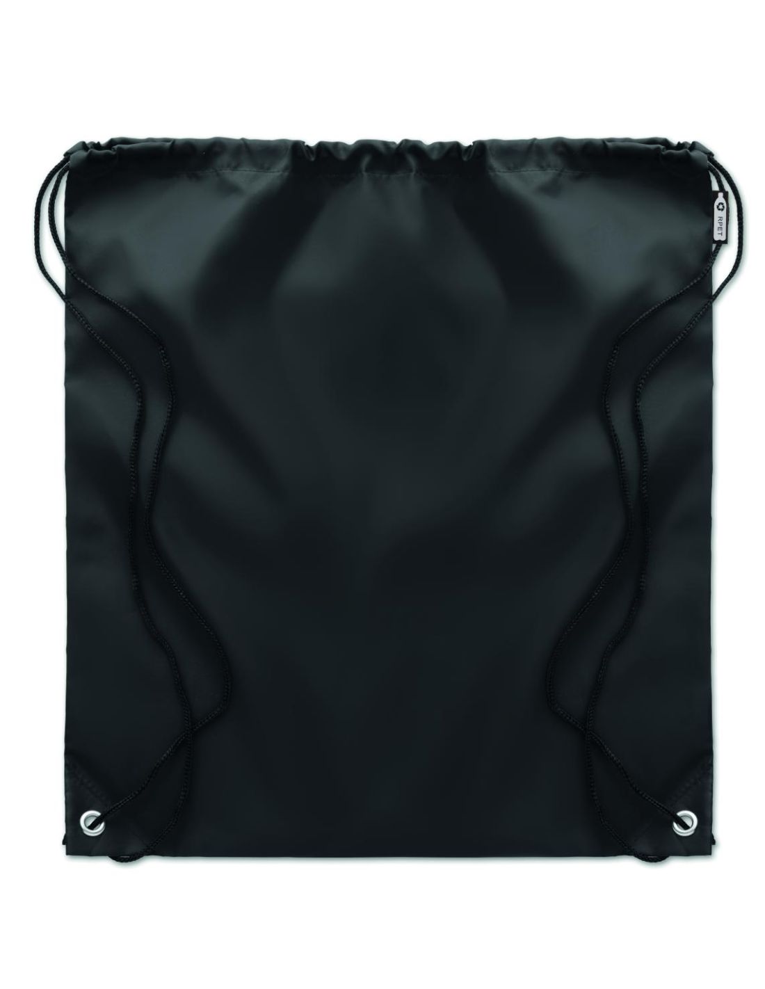 Bolsa con cordón de RPET 190T con tiras de PP. Material respetuoso con el medio ambiente, elaborado a partir de botellas de plástico recicladas.