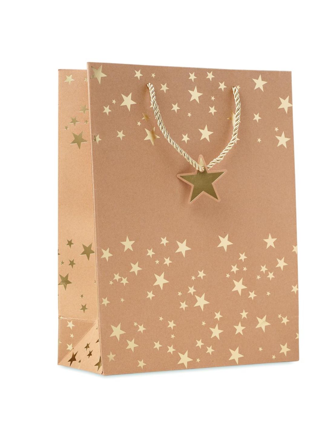 Elegante bolsa de papel kraft de regalo con estampado navideño. Etiqueta de regalo incluida. 250 gr/m². Esta elegante y festiva bolsa de papel es …