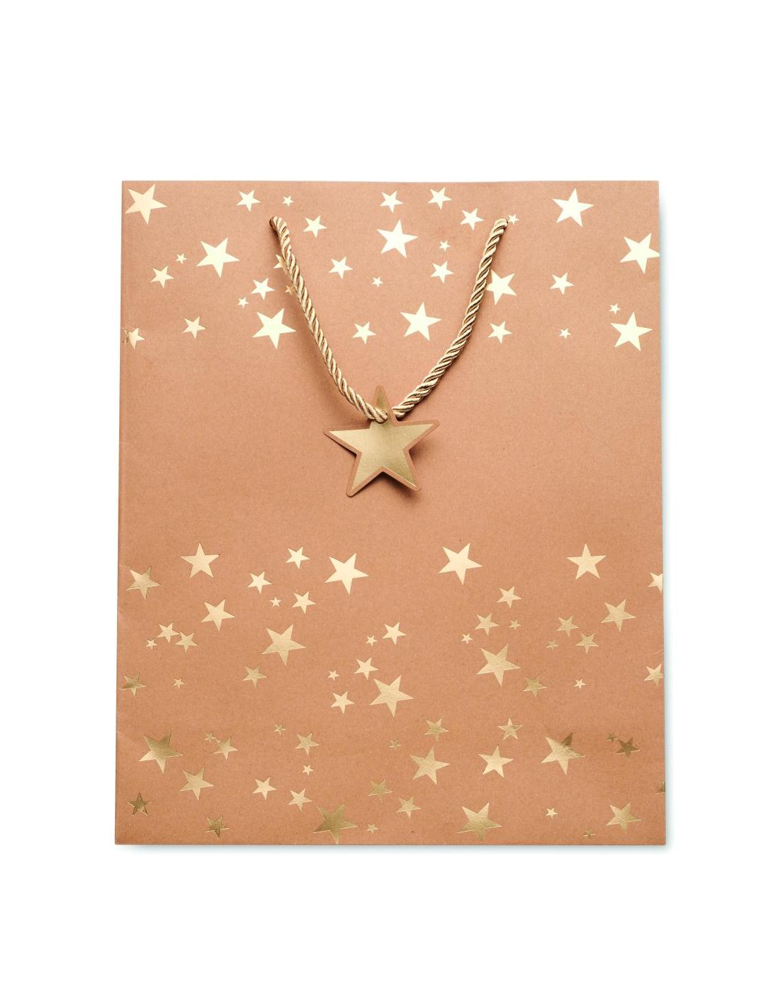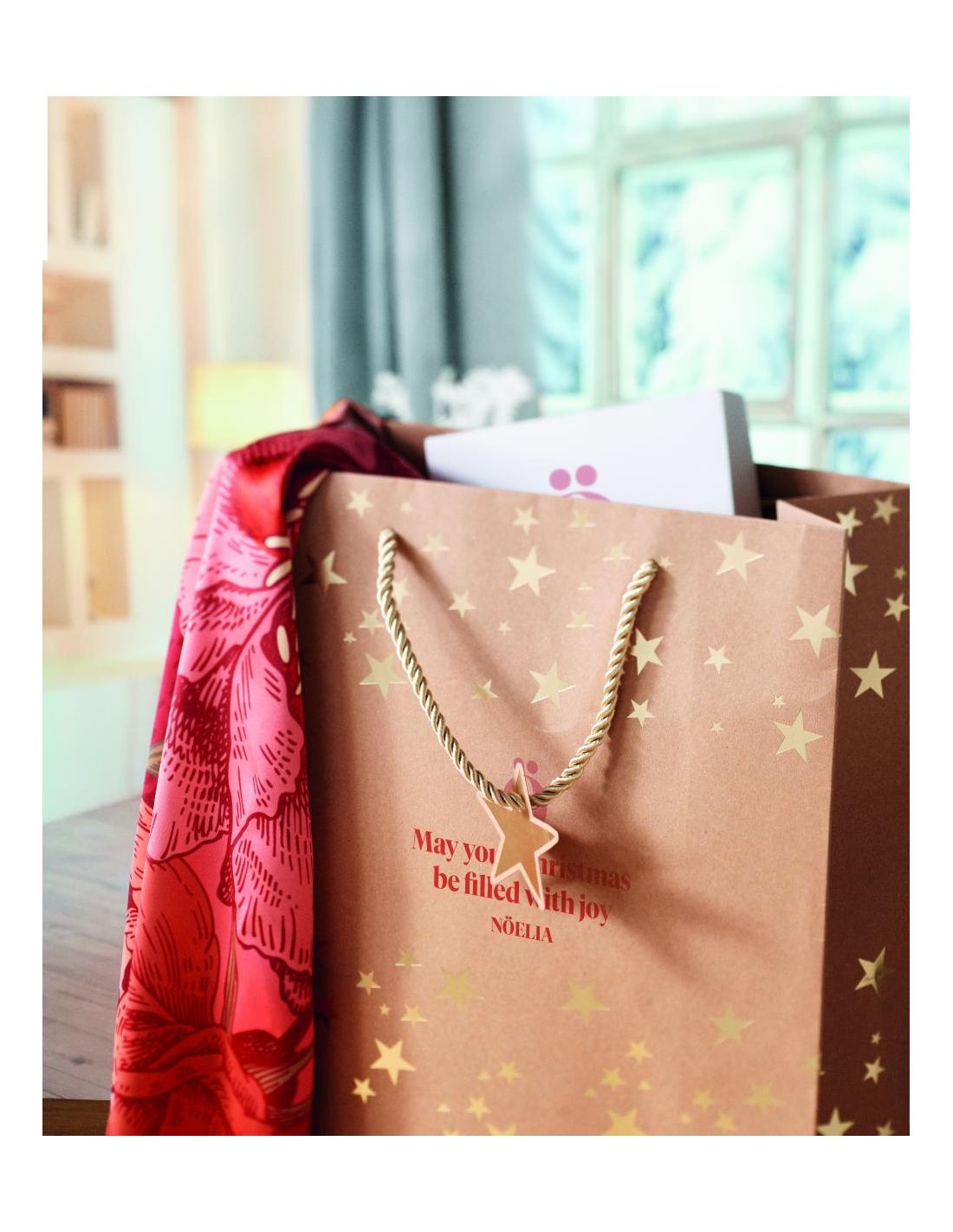 Elegante bolsa de papel kraft de regalo con estampado navideño. Etiqueta de regalo incluida. 250 gr/m². Esta elegante y festiva bolsa de papel es el envoltorio perfecto para un regalo bien pensado para una persona especial. Recibir un bonito regalo empaquetado es la mitad de la diversión. FSC®-certified | FSC RECYCLED, P5.3, FSC-C213206