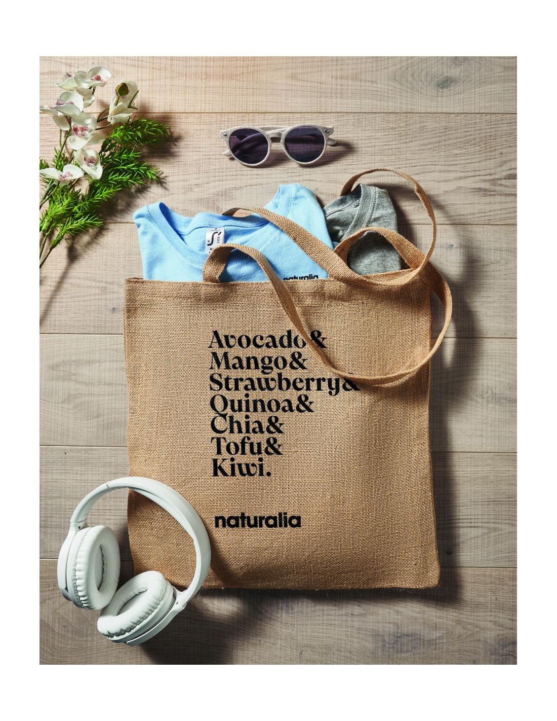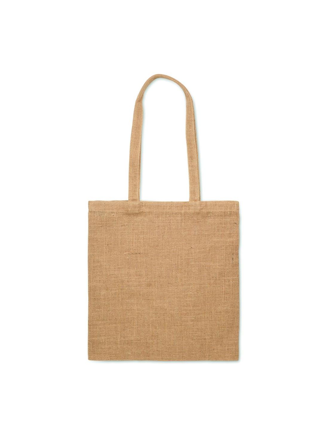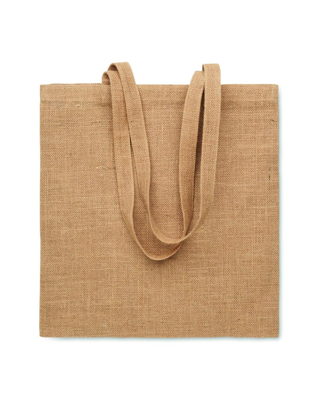 Bolsa de la compra de yute con asas largas. Este producto cuenta con la certificación OEKO-TEX® STANDARD 100.
