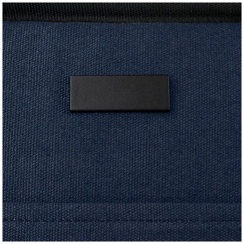 Compuesta por lona reciclada GRS y forro GRS RPET, la bolsa isotérmica para comida y 9 latas cuenta con un compartimento principal aislado con forro de PEVA de grado alimenticio, un bolsillo delantero abierto y dos asas de correa reforzadas para un transporte cómodo. La placa metálica decorativa puede hacer brillar un logotipo gracias a su acabado sutil y mate.