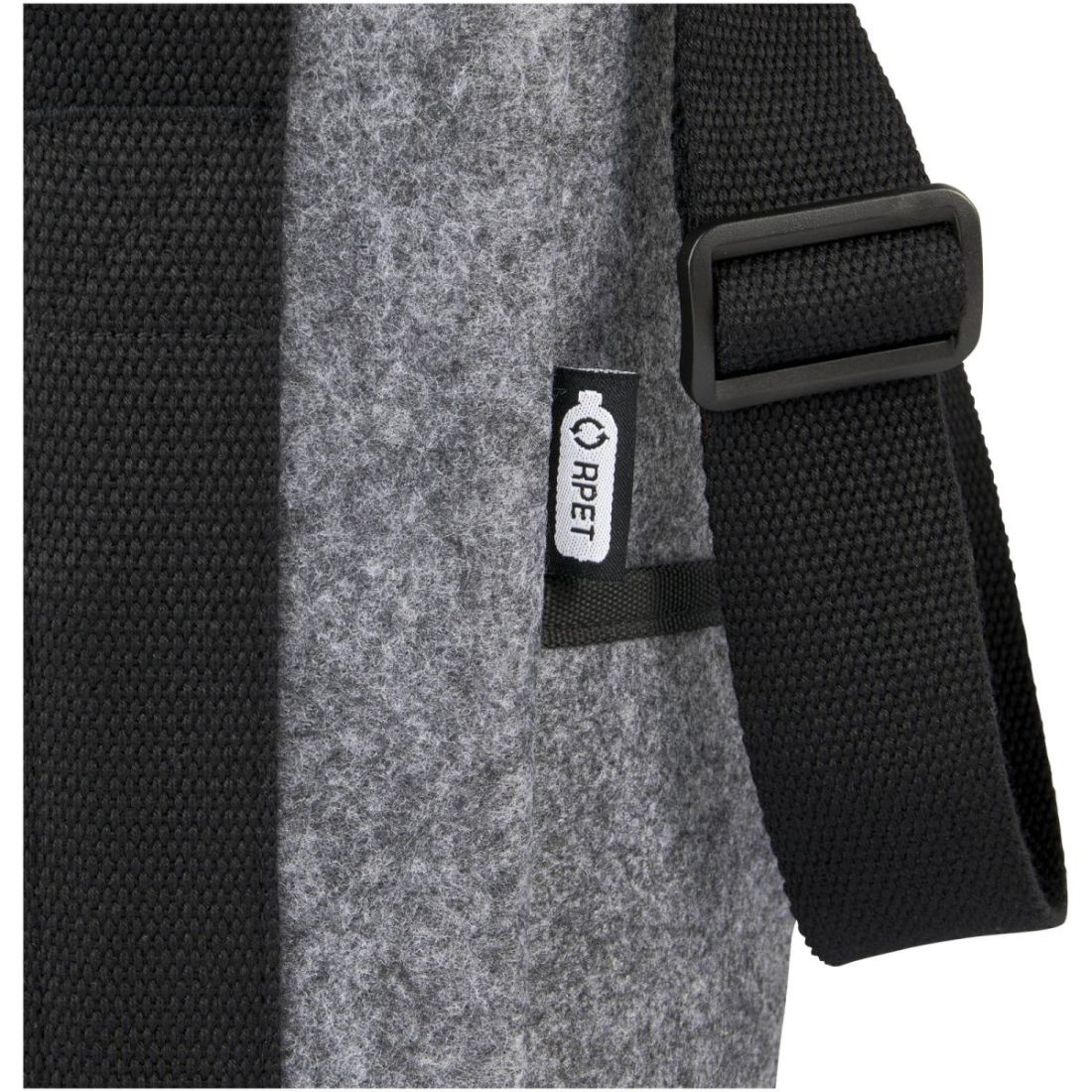 Bolsa isotérmica grande fabricada con fieltro reciclado de alta calidad, suave y duradero, con certificación GRS. Cuenta con un gran compartimento principal (para seis botellas de 1,5 litros) forrado con aislamiento térmico PEVA de alta densidad, extragrueso y apto para uso alimentario, que mantiene frías las bebidas y los refrescos durante horas. Cierre de cremallera superior, bolsillo frontal y dos bolsillos laterales para almacenamiento adicional. Correas de hombro largas y ajustables (55 x 3,8 cm) y 2 asas de transporte de algodón tejido (25 x 3,8 cm) con cierre superior de gancho y bucle. Fácil de limpiar. Capacidad: 21 litros.