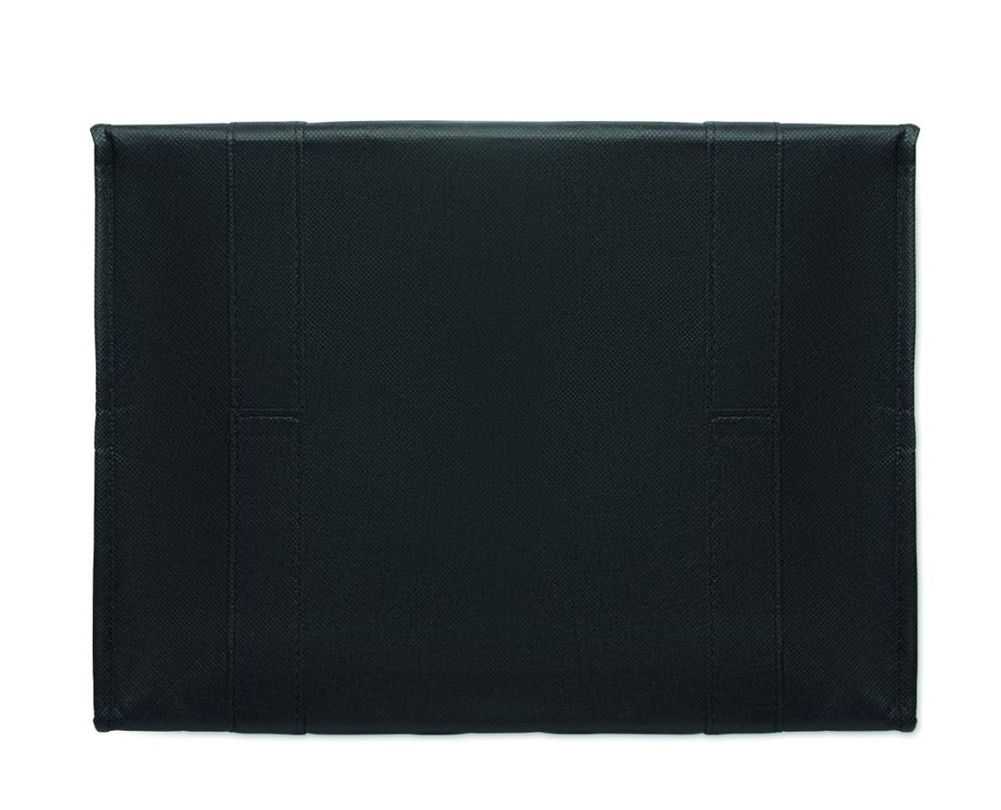 Bolsa nevera en RPET no tejido (non woven) de 80gr/m². Material de aislamiento: papel de aluminio. Capacidad 25L. Compartimento principal con cremallera en la parte superior y refuerzo de cartón PP extraíble.