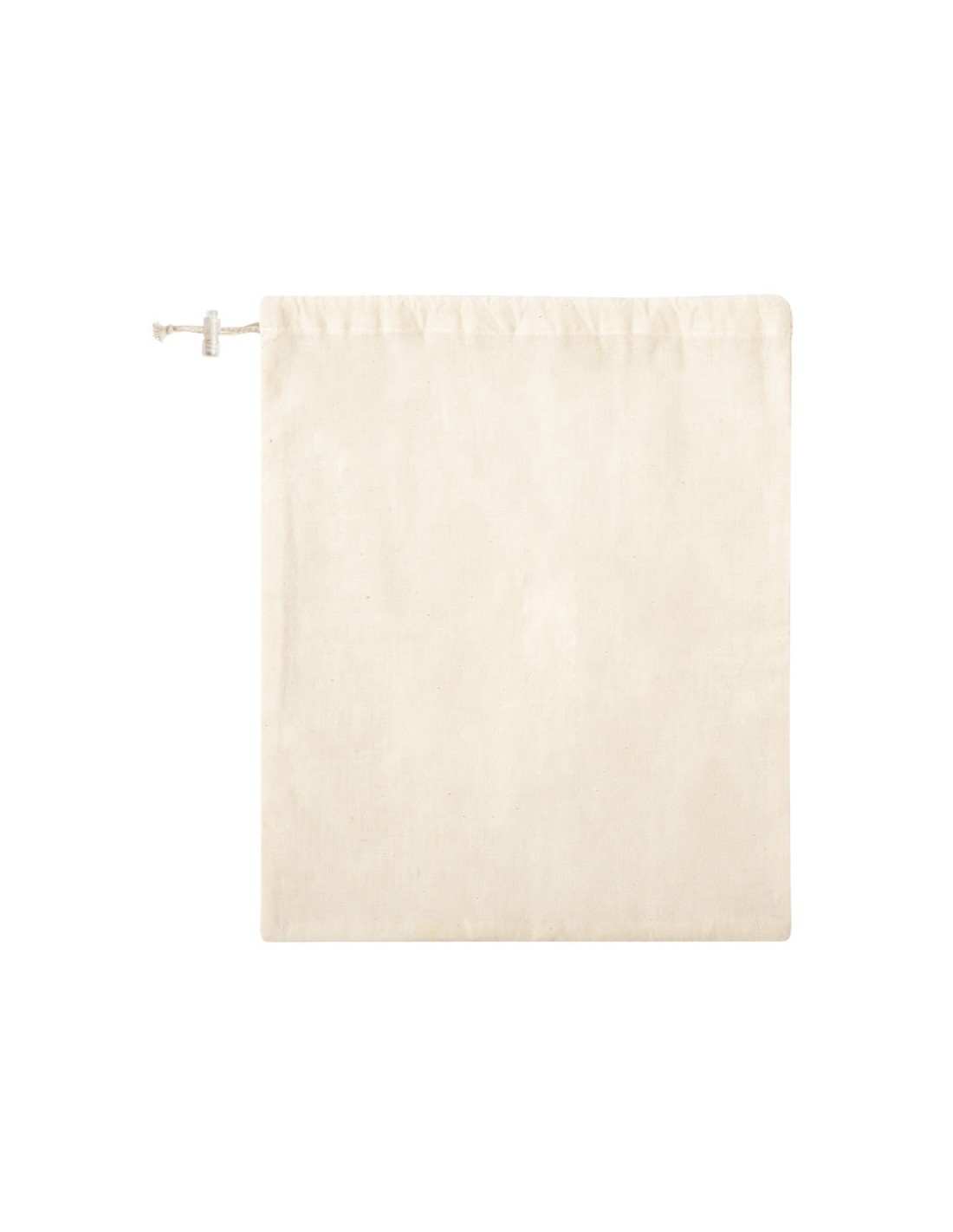 Bolsa de redecilla de línea nature en algodón crudo de 120g/m2, con una cara lisa para impresión. Cierre de cordón con accesorio de ajuste.