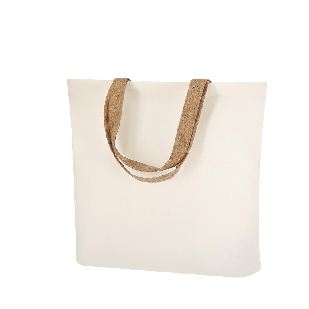 Bolsa de línea nature en resistente algodón de 180g/m2 y originales asas en corcho natural de 53cm reforzadas. Acabado cosido y resistencia hasta 8kg de peso.