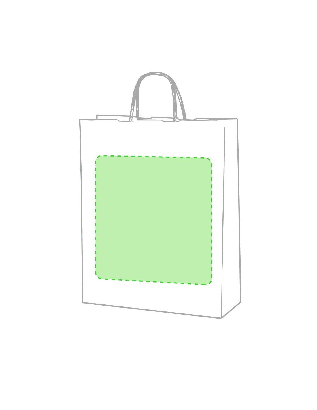 Bolsa en papel de acabado natural de 100g/m2 con asas cortas reforzadas y fuelle. Resistencia hasta 7kg de peso.