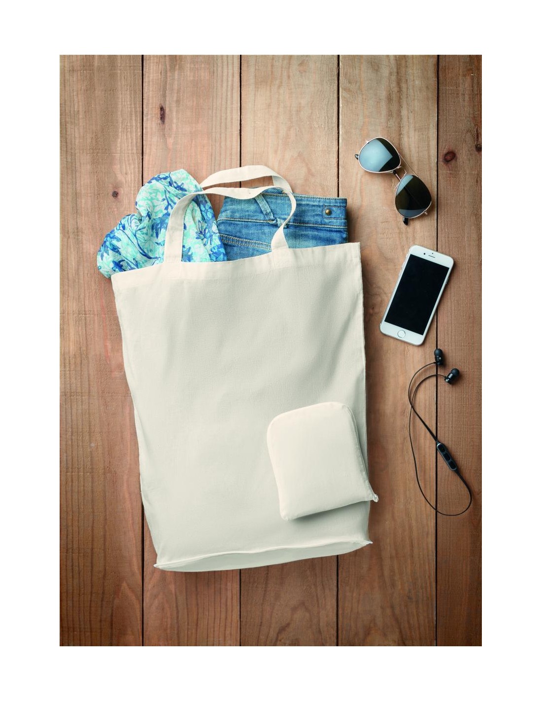 Bolsa plegable de algodón con asas cortas. 100 gr / m². Se suministra desplegado.