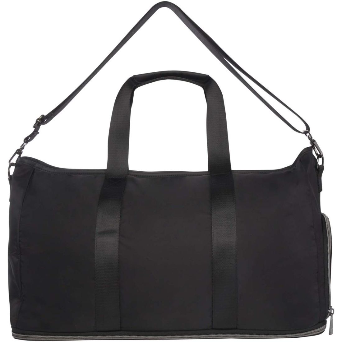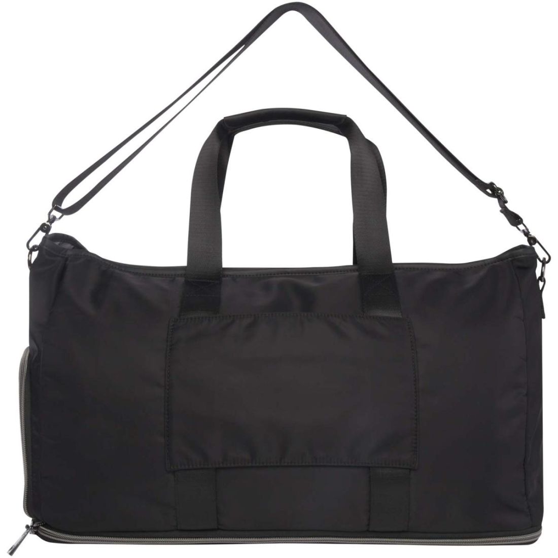 La bolsa de lona extensible se transforma sin esfuerzo con estilo para diversas ocasiones gracias a su elegante diseño y versatilidad. Fabricada con nylon reciclado de alta calidad, suave forro de RPET y elementos de cuero de poliuretano de primera calidad. La bolsa de lona cuenta con un espacioso compartimento principal con un gran bolsillo de TPU a prueba de fugas, 2 bolsillos, un compartimento específico para zapatos, un bolsillo oculto seguro en la parte posterior (que hace las veces de correa para trolley) y correas desmontables para los hombros que pueden ajustarse para ofrecer la máxima comodidad. Lo que de verdad distingue esta bolsa de lona es su capa extensible, que puede ampliarse hasta 42 litros de capacidad. Capacidad: 35-42 litros. Resistencia para hasta 20 kg de peso. Sin PVC.