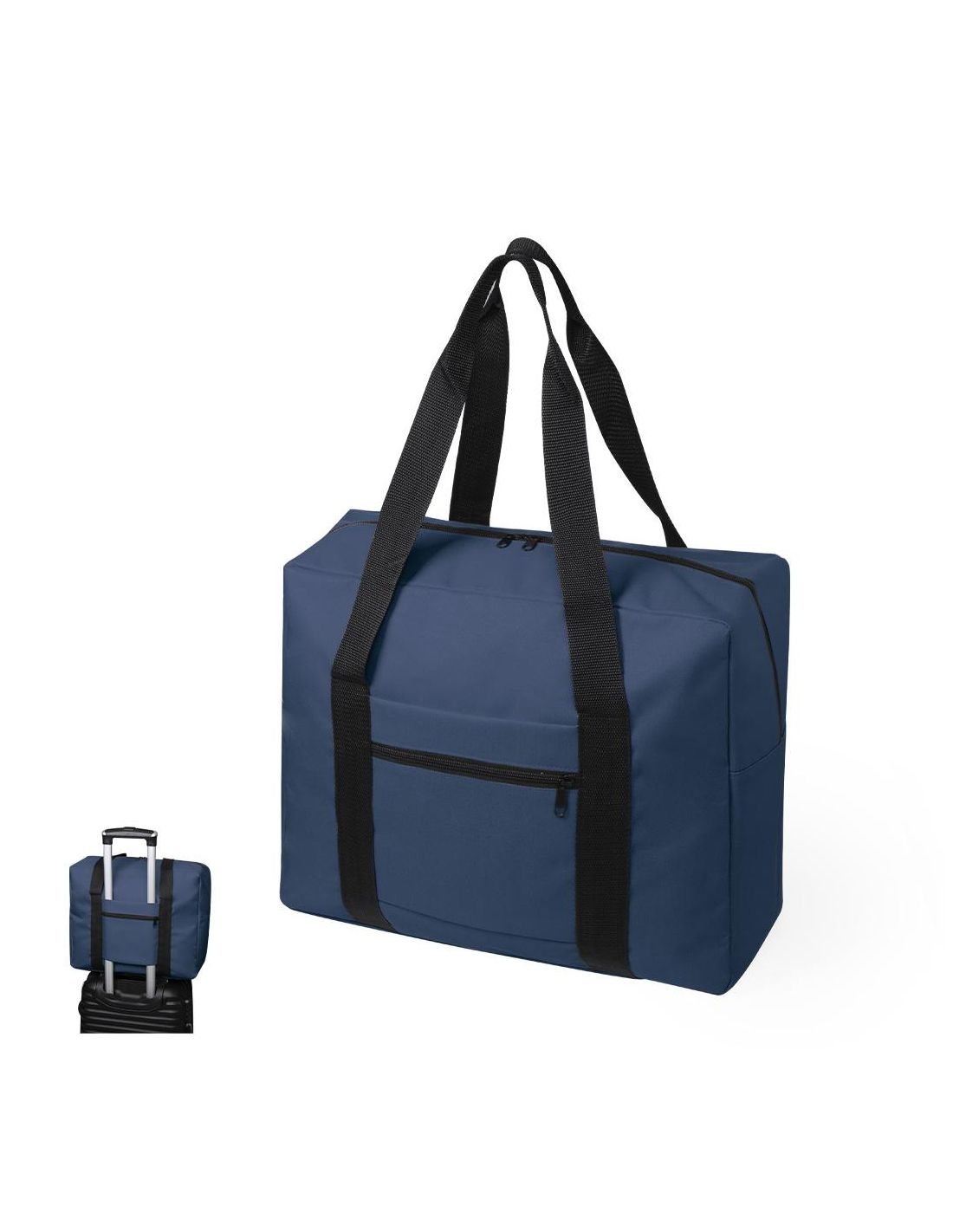 Bolso multiusos en resistente poliéster 600D y desenfadado diseño bicolor. Compartimento principal con cierre de cremallera y doble tirador, con accesorio de ajuste en trolley, resistentes asas de nylon y bolsillo lateral de cremallera.