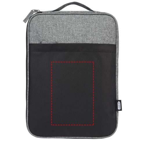 La funda para portátil en dos tonos está hecha de materiales 100 % reciclados GRS en el exterior y cuenta con un compartimento para portátiles compacto y seguro que se adapta a la mayoría de los portátiles de 14 pulgadas. También tiene un bolsillo delantero con cremallera para documentos, cuadernos y pequeños accesorios y un asa de transporte, por lo que es perfecta para desplazamientos diarios.
