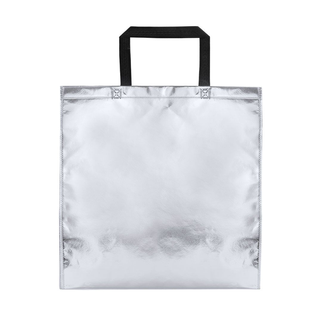 Bolsa en non-woven laminado de acabado metalizado. Disponible en colores dorado, plateado y oro rosa. Con asas medianas reforzadas de 42 cm de largo....