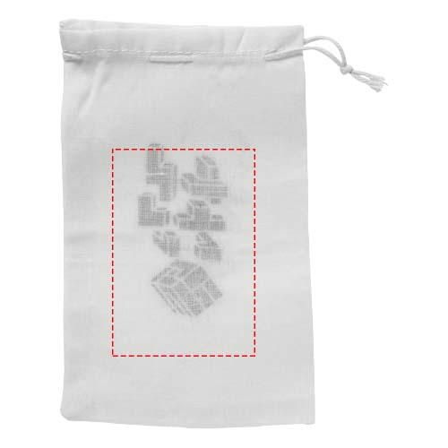 Un juego de ingenio cuadrado en madera presentado en una bolsa de algodón. No permite la grabación en el puzzle. ¡Advertencia! No apto para niños menores de tres años. Piezas pequeñas. Peligro de asfixia.