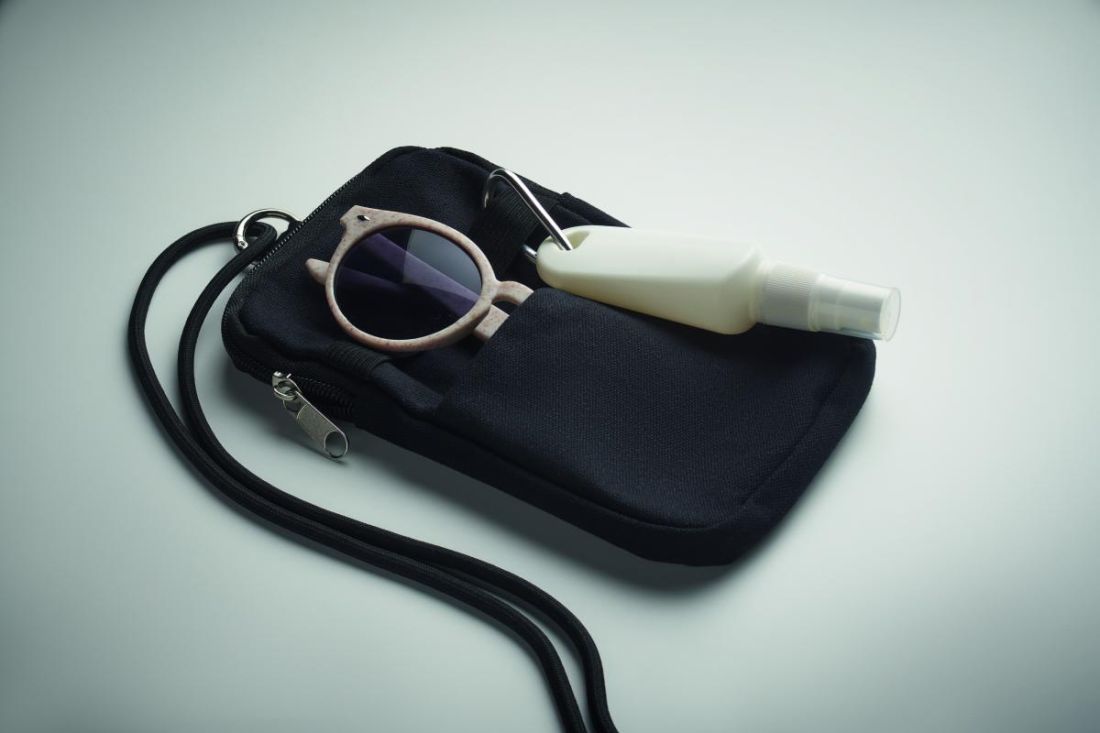 Bolsa bandolera para smartphone de algodón reciclado con cordón ajustable de poliéster RPET y bolsillo abierto en la parte delantera. 280 gr/m².