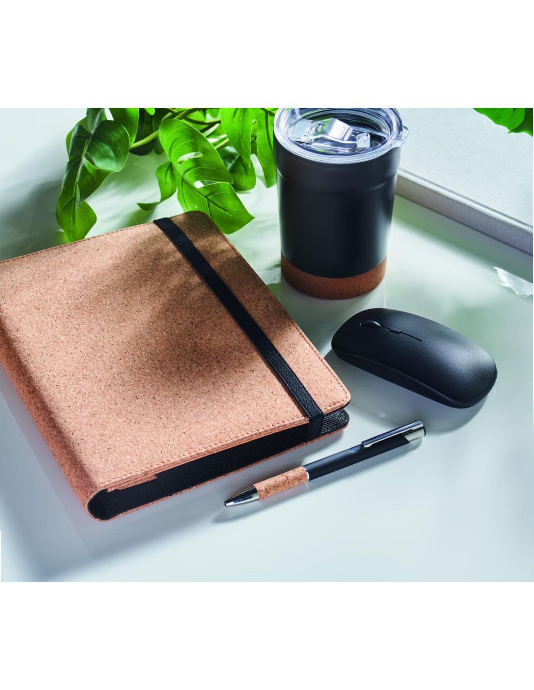 Porta documentos de corcho A5. Incluye libreta A5 con tapa dura de corcho. 192 páginas rayadas de papel reciclado (96 hojas). Bolígrafo y portabolí…