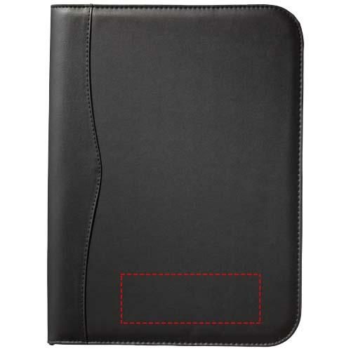El artículo perfecto con el que cada empleado contribuye indirectamente a dar a conocer su marca: la cartera Ebony. La cartera, de tamaño A4, incluye un práctico compartimento y un bolsillo con cremallera para guardar documentos. Además, cuenta con un bloc de notas forrado de 20 páginas y un bucle para el bolígrafo (bolígrafo y accesorios no incluidos). Cierra la cartera con la cremallera para mantener el contenido ordenado y bien protegido. La cartera está fabricada en imitación de piel duradera y ofrece mucho espacio para logotipos grandes.