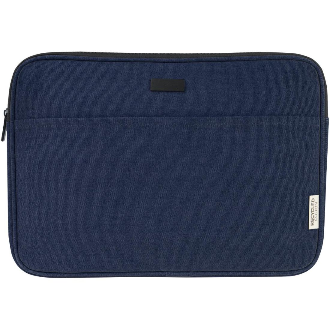 La funda para portátil de 14Joey", compuesta por lona reciclada GRS y forro GRS RPET, tiene un compartimento protegido para portátil y un bolsillo delantero abierto con cierre autoadherente. La placa metálica decorativa puede hacer brillar un logotipo gracias a su acabado sutil y mate.