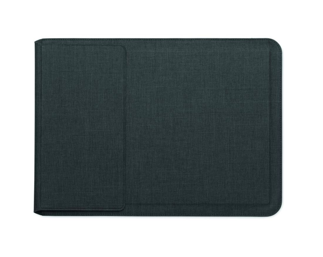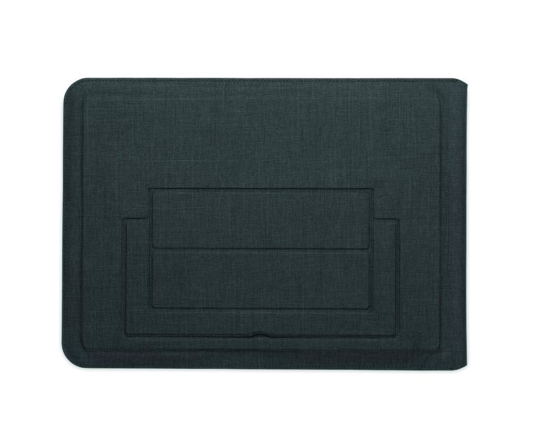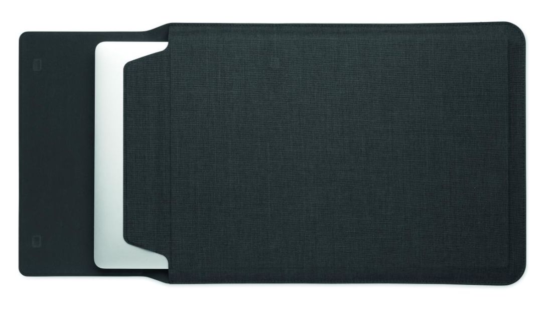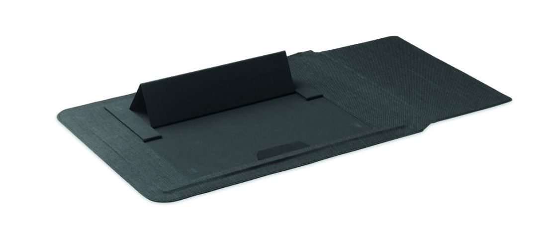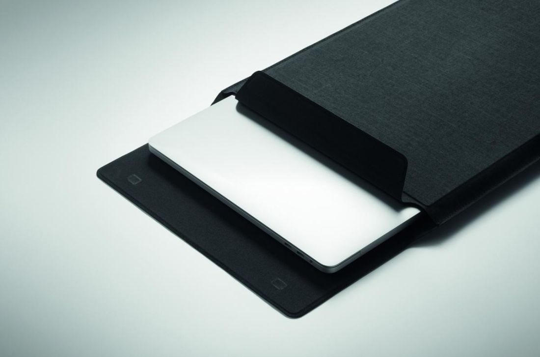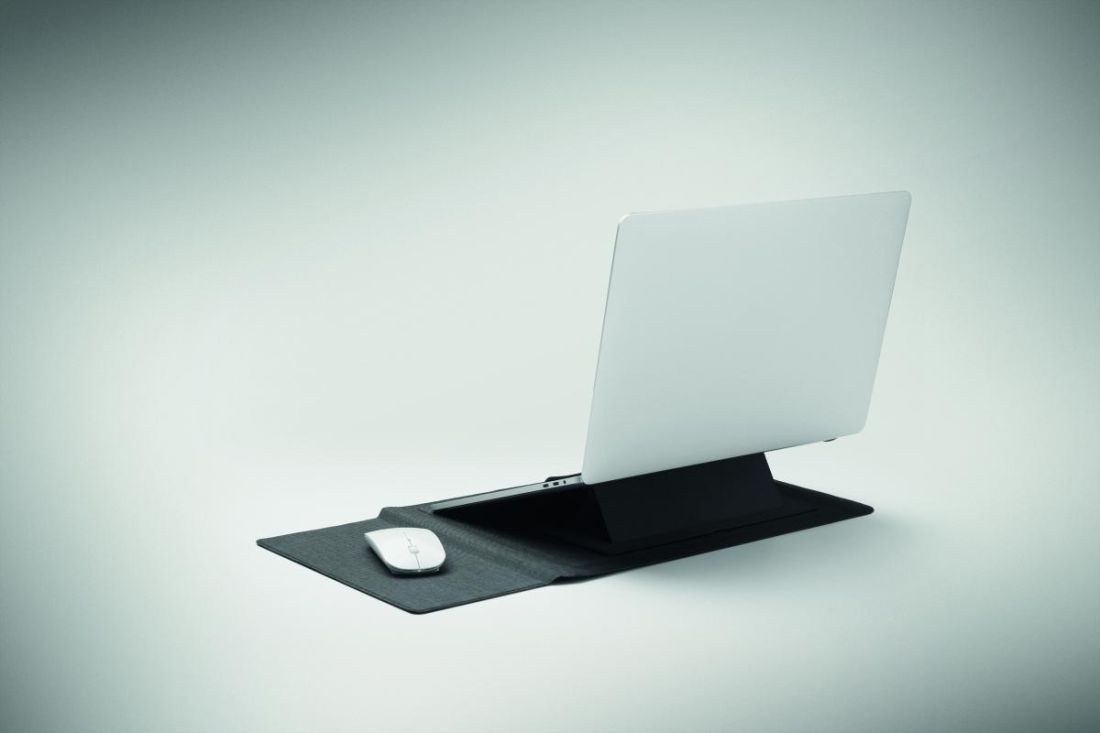 Funda para portátil 3 en 1 de RPET de 16'' con soporte para portátil y funcionalidad de alfombrilla de ratón cuando está desplegada.