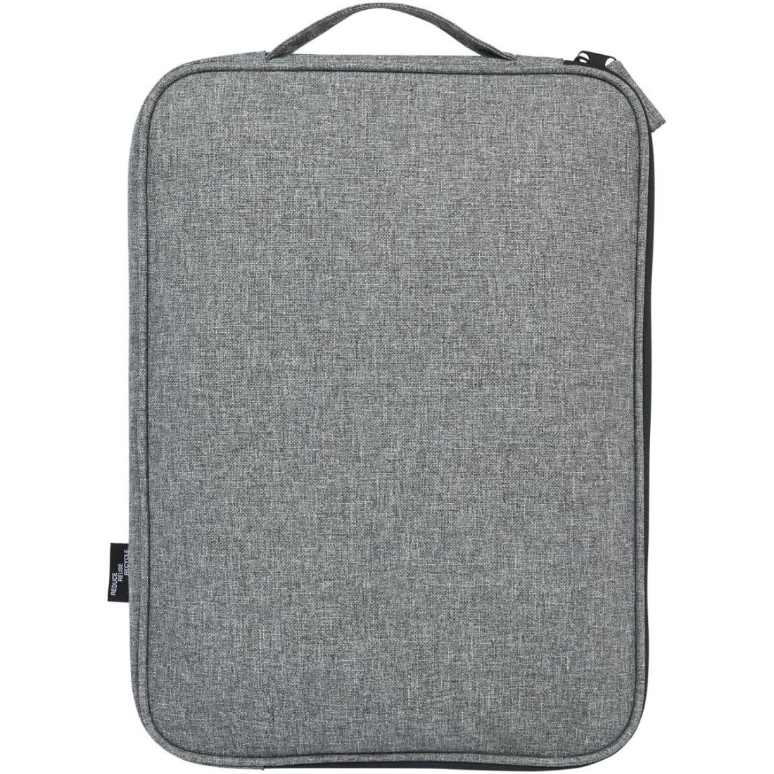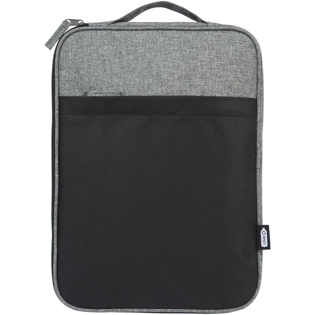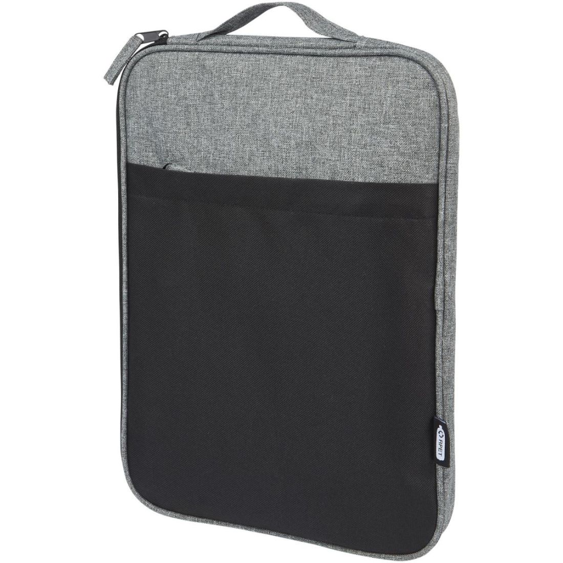 La funda para portátil en dos tonos está hecha de materiales 100 % reciclados GRS en el exterior y cuenta con un compartimento para portátiles compacto y seguro que se adapta a la mayoría de los portátiles de 14 pulgadas. También tiene un bolsillo delantero con cremallera para documentos, cuadernos y pequeños accesorios y un asa de transporte, por lo que es perfecta para desplazamientos diarios.