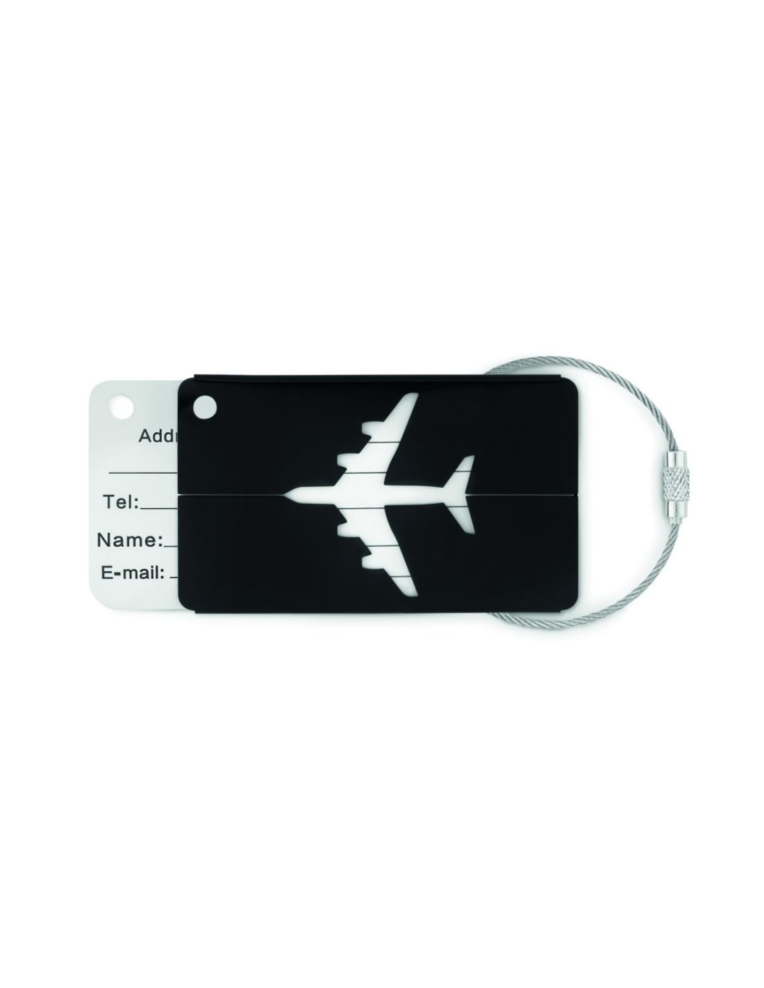 Identificador de maleta en aluminio. Incluye correa y etiqueta para nombre y dirección.